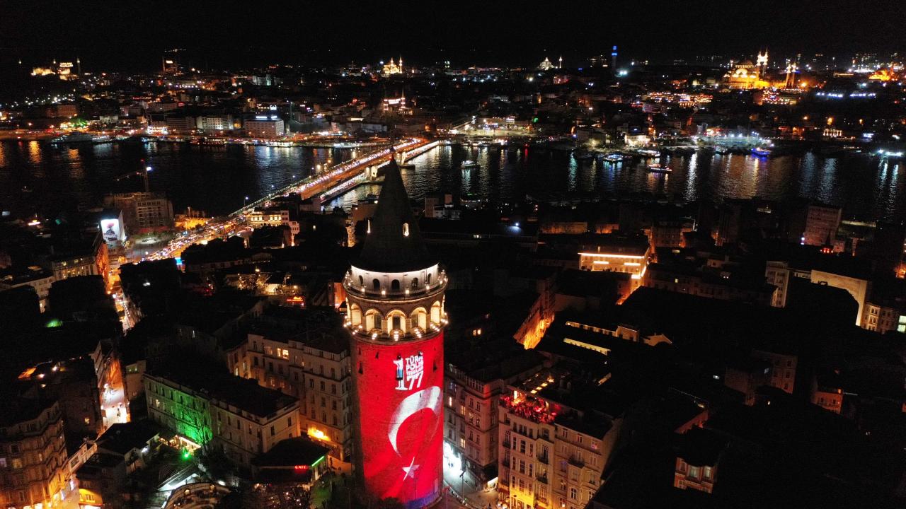 Galata Kulesi Türk Polis Teşkilatı için aydınlatıldı