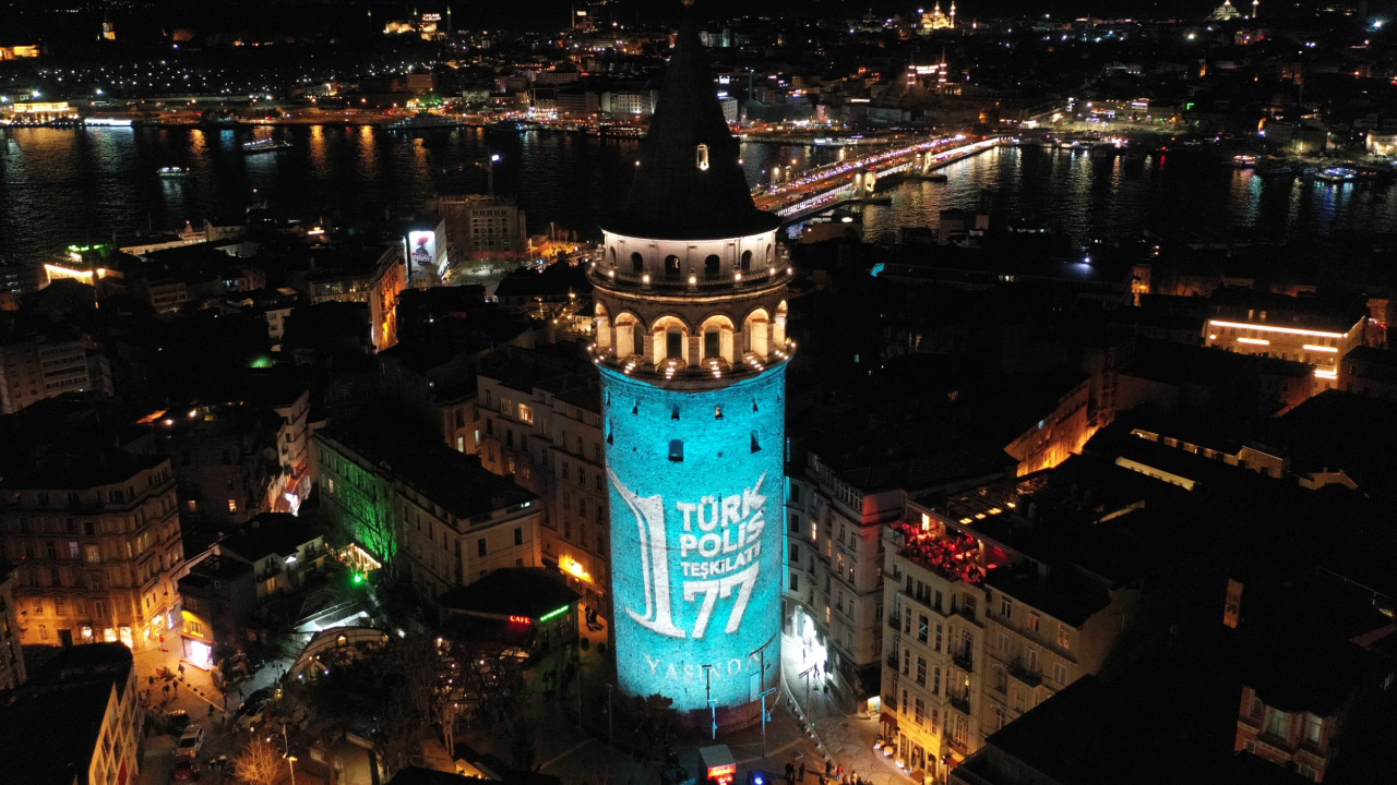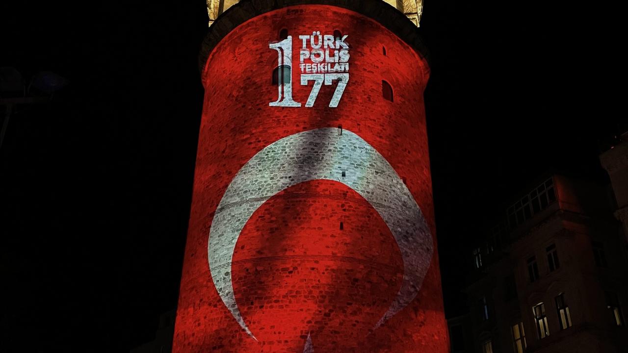 Türk Polis Teşkilatının 177. kuruluş yıl dönümü dolayısıyla Galata Kulesi üzerinde "video ve fotoğraf gösterisi" yapıldı.