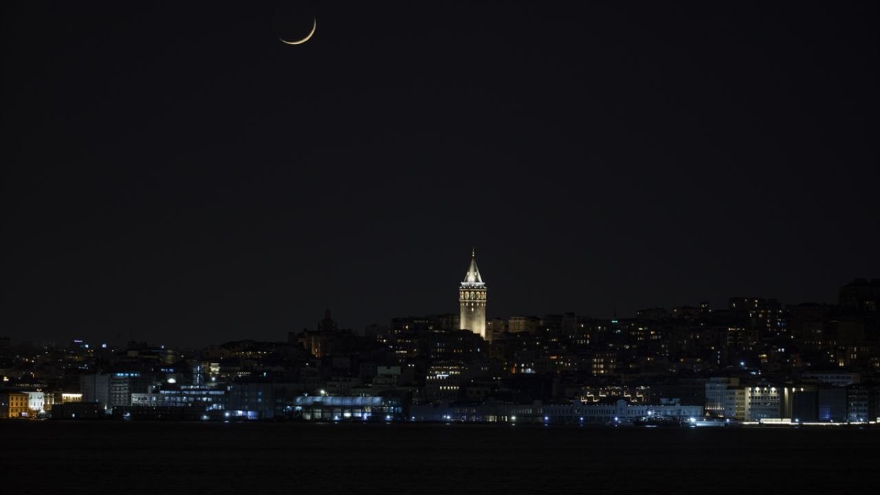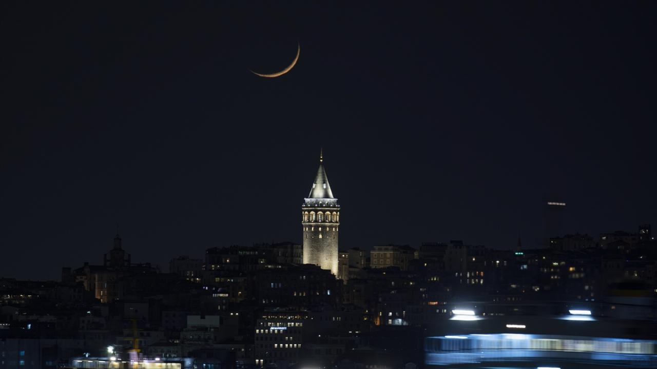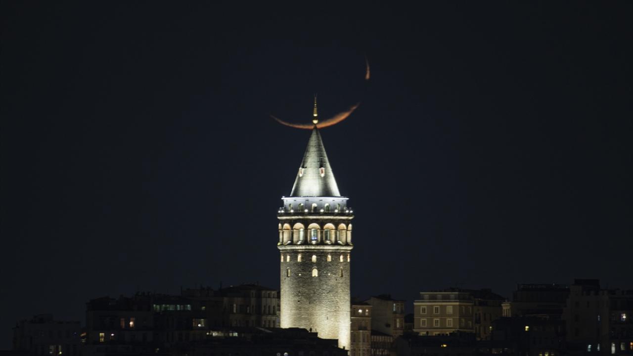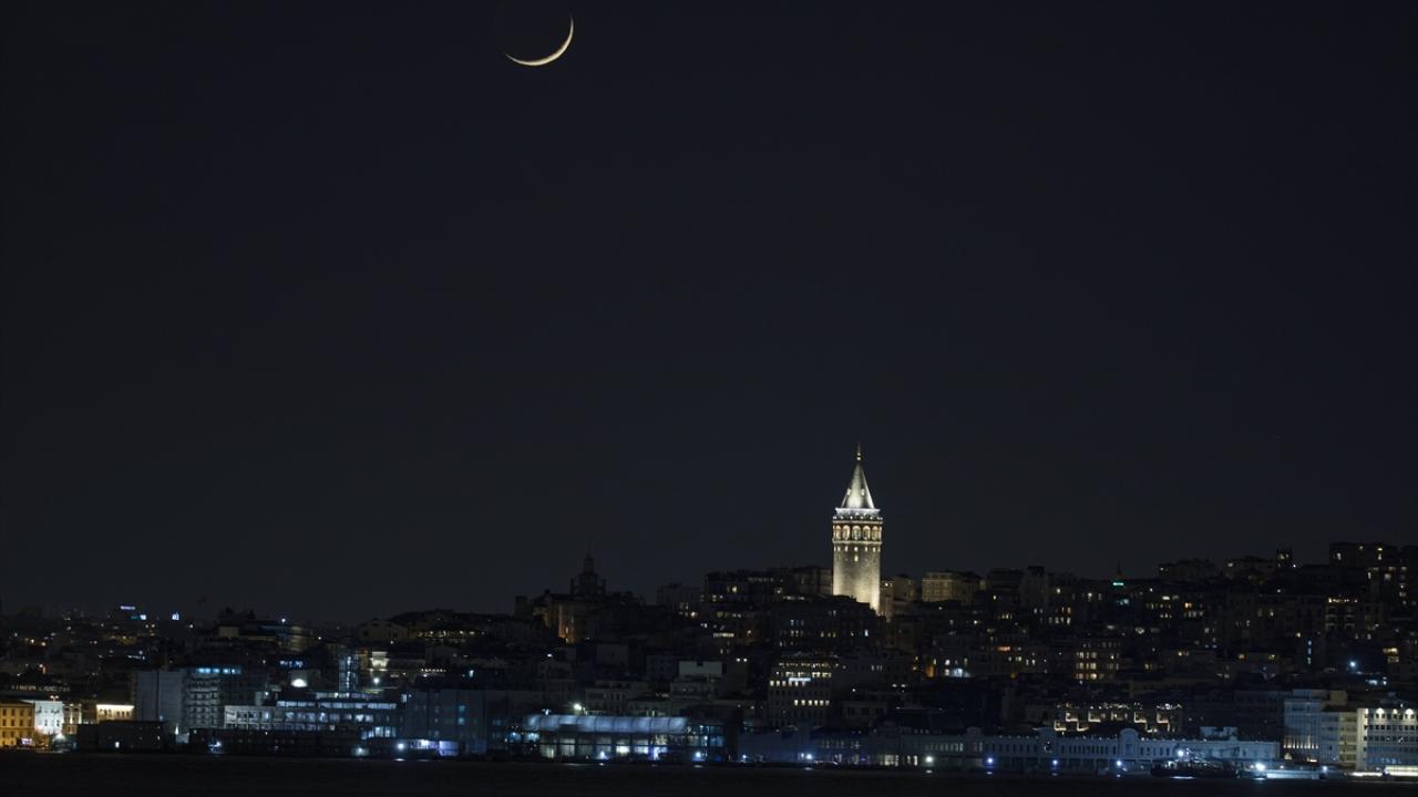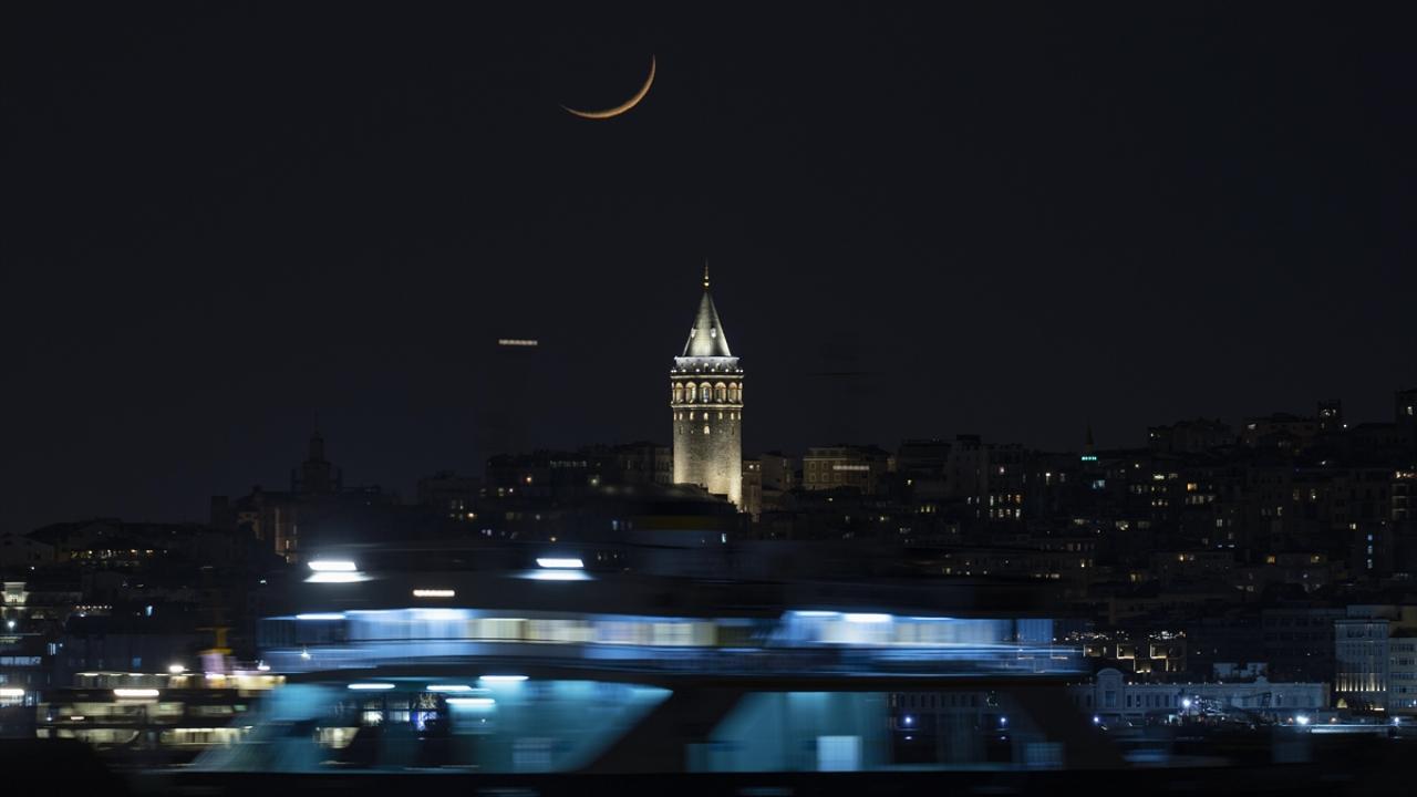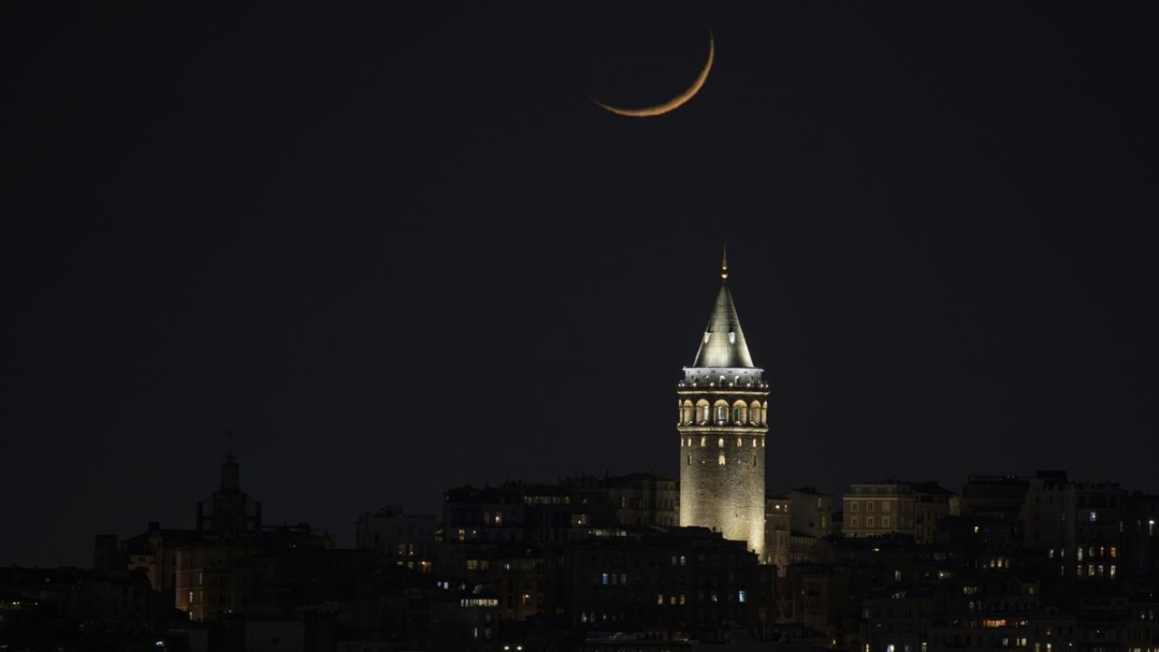 İstanbul'da gökyüzünde beliren hilal, Galata Kulesi ile güzel görüntüler oluşturdu.