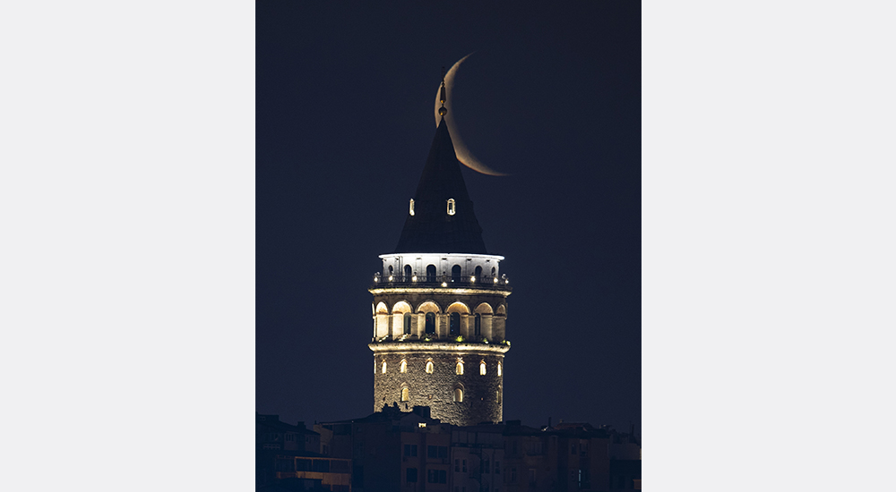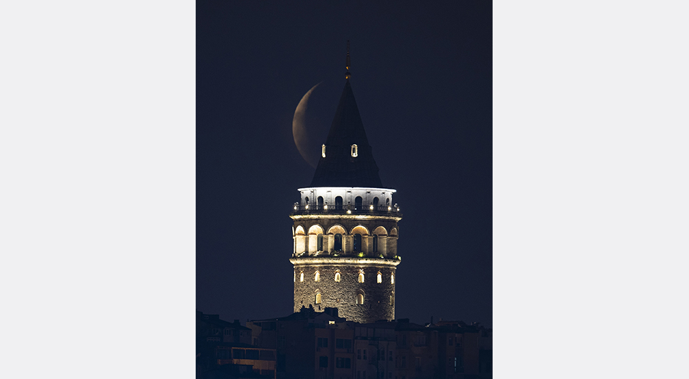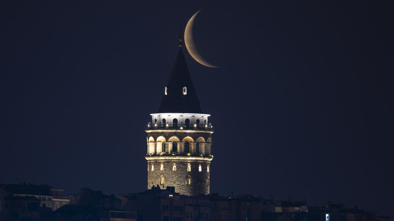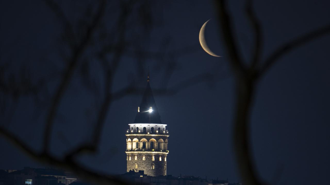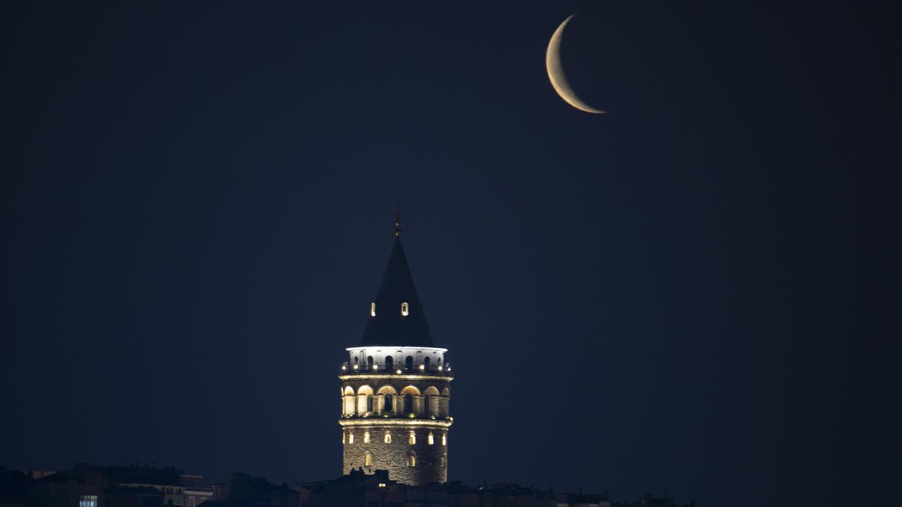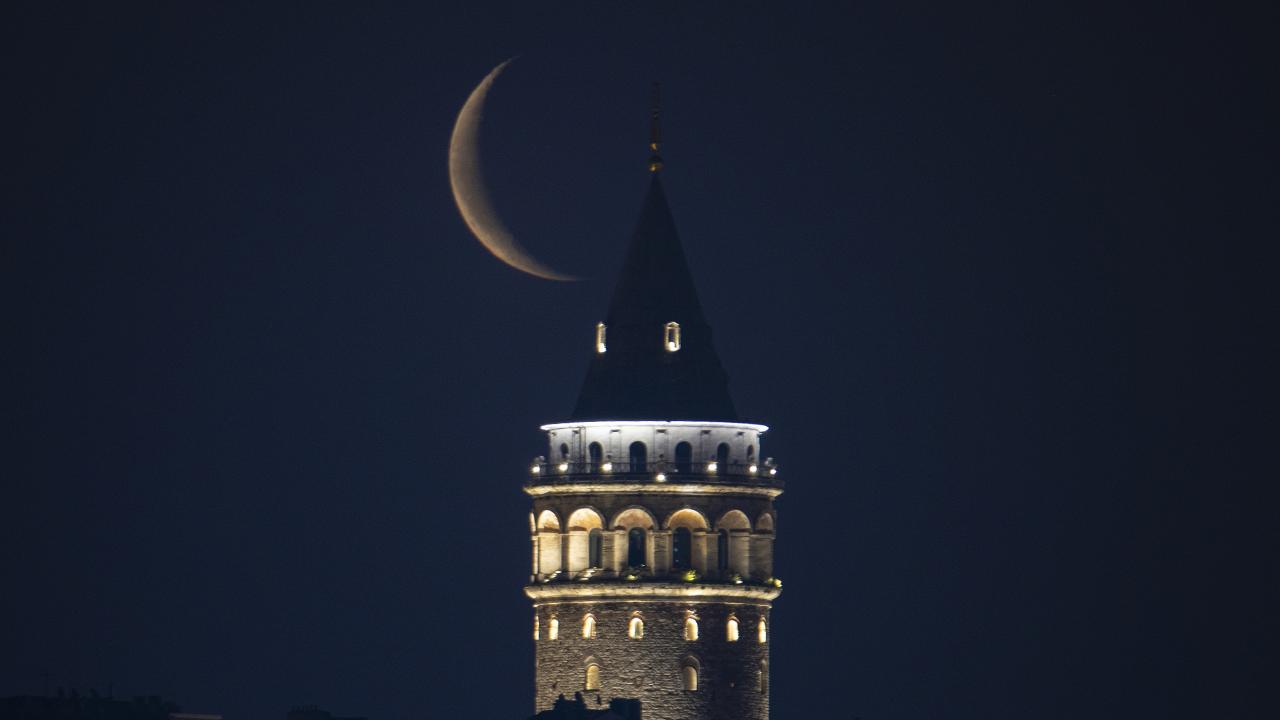 İstanbul'da hilal, Galata Kulesi ile güzel görüntü oluşturdu.