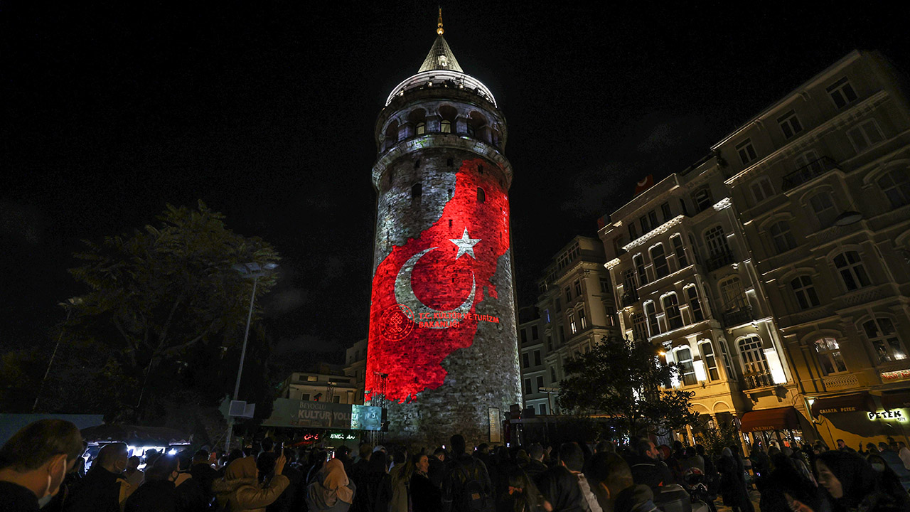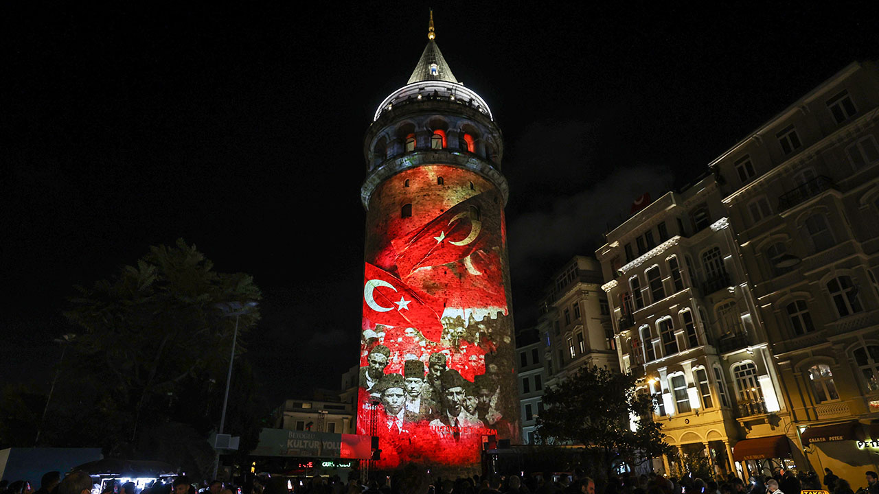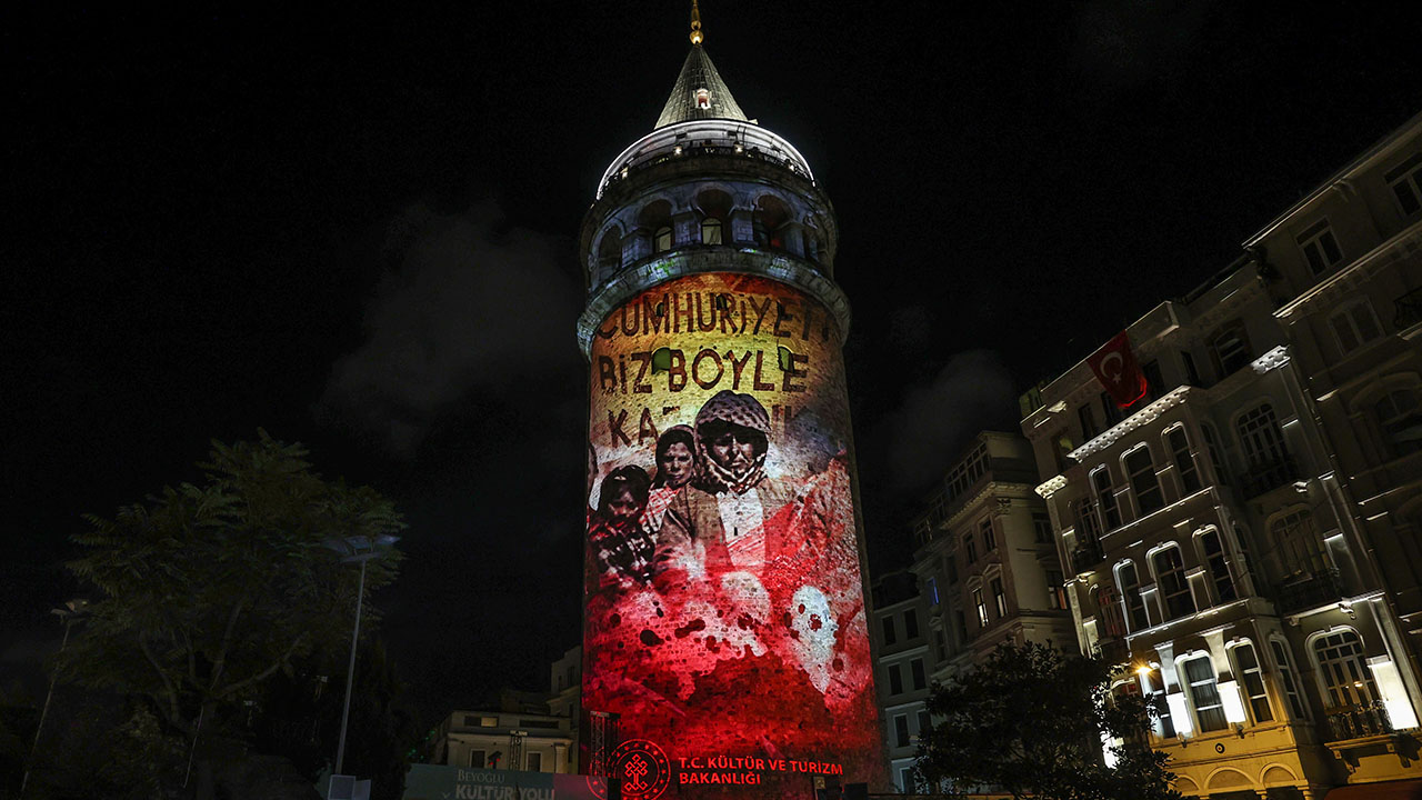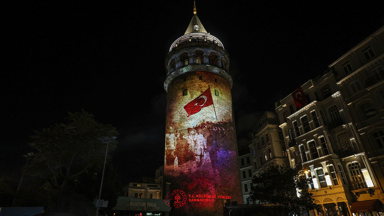 Galata Kulesi`ne, Gazi Mustafa Kemal Atatürk`ün Bandırma vapuruna binişiyle başlayan, İstiklal Harbi boyunca Mustafa Kemal ve silah arkadaşlarının yanı sıra kadınıyla erkeğiyle, genciyle yaşlısıyla verilen büyük mücadeleyi anlatan görseller, Kültür Varlıkları ve Müzeler Genel Müdürlüğünce özel olarak hazırlanan metin eşliğinde aktarıldı.