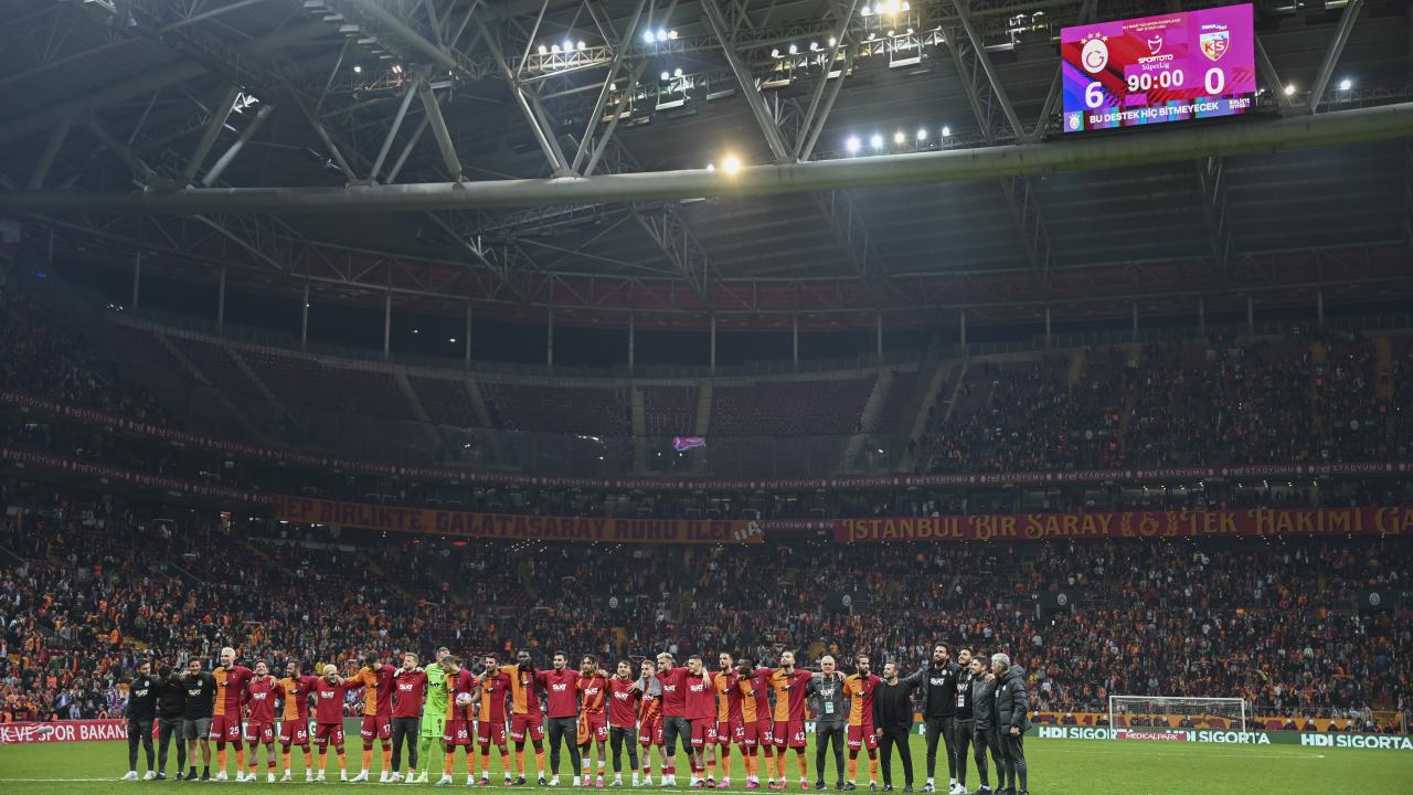 Bu sezon sahasındaki en farklı galibiyetini elde eden lider Galatasaray, puanını 66`ya çıkartarak, maç fazlasıyla ikinci sıradaki Fenerbahçe`nin 9 puan önüne geçti.