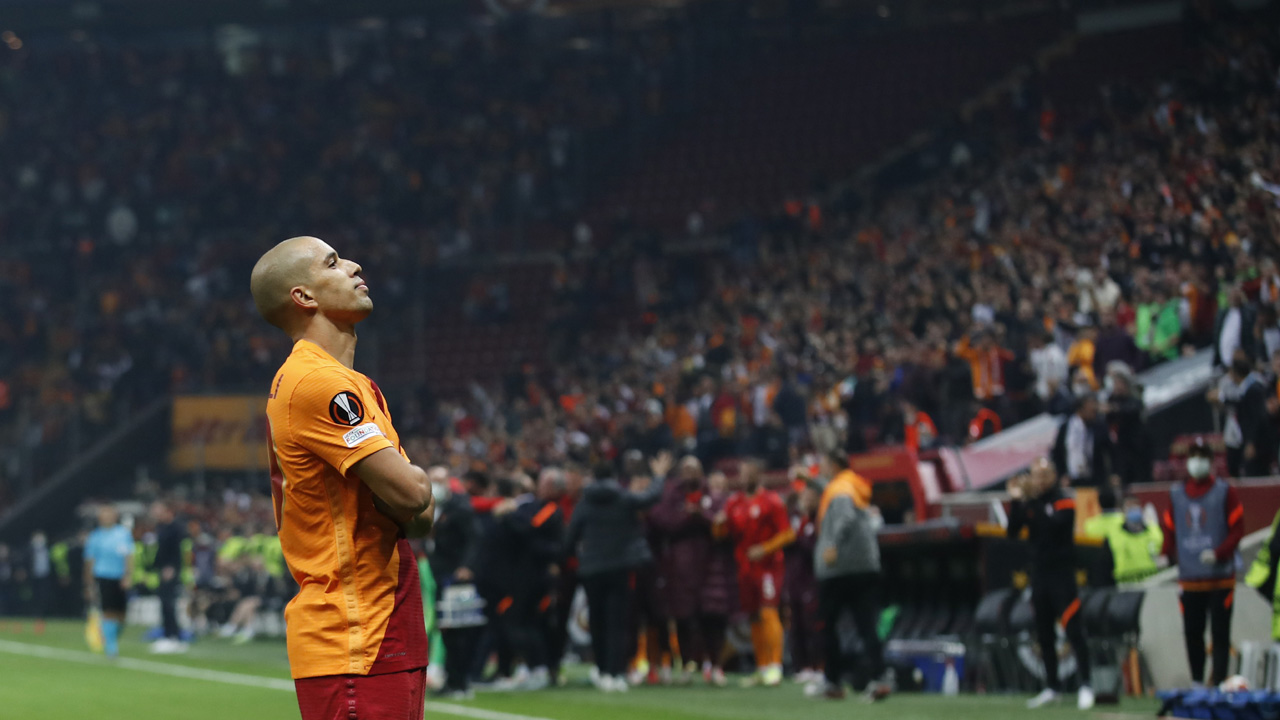Nef Stadı`nda tribünleri çok büyük oranda dolduran sarı-kırmızılı taraftarlar oynanan müsabakada Galatasaray, Cezayirli futbolcusu Sofiane Feghouli`nin 43. dakikada attığı şık golle ilk yarıyı 1-0 önde kapattı.