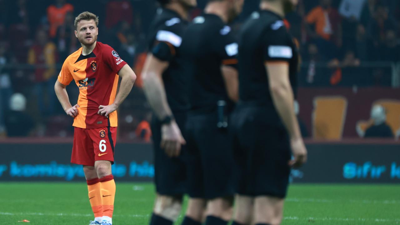 Galatasaray`da Sacha Boey 31. dakikada, Abdülkerim Bardakcı da 90+4 dakikda direkt olarak kırmızı kartla oyun dışında kaldı.