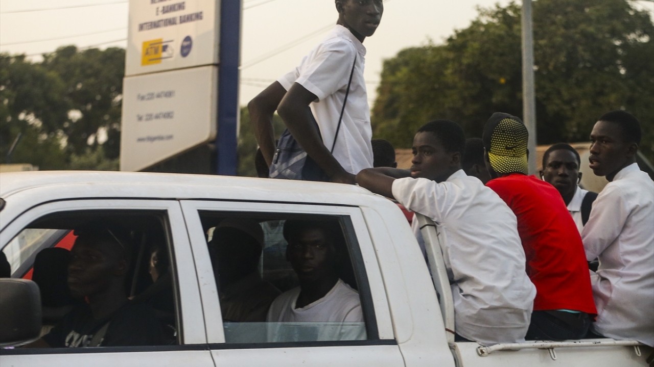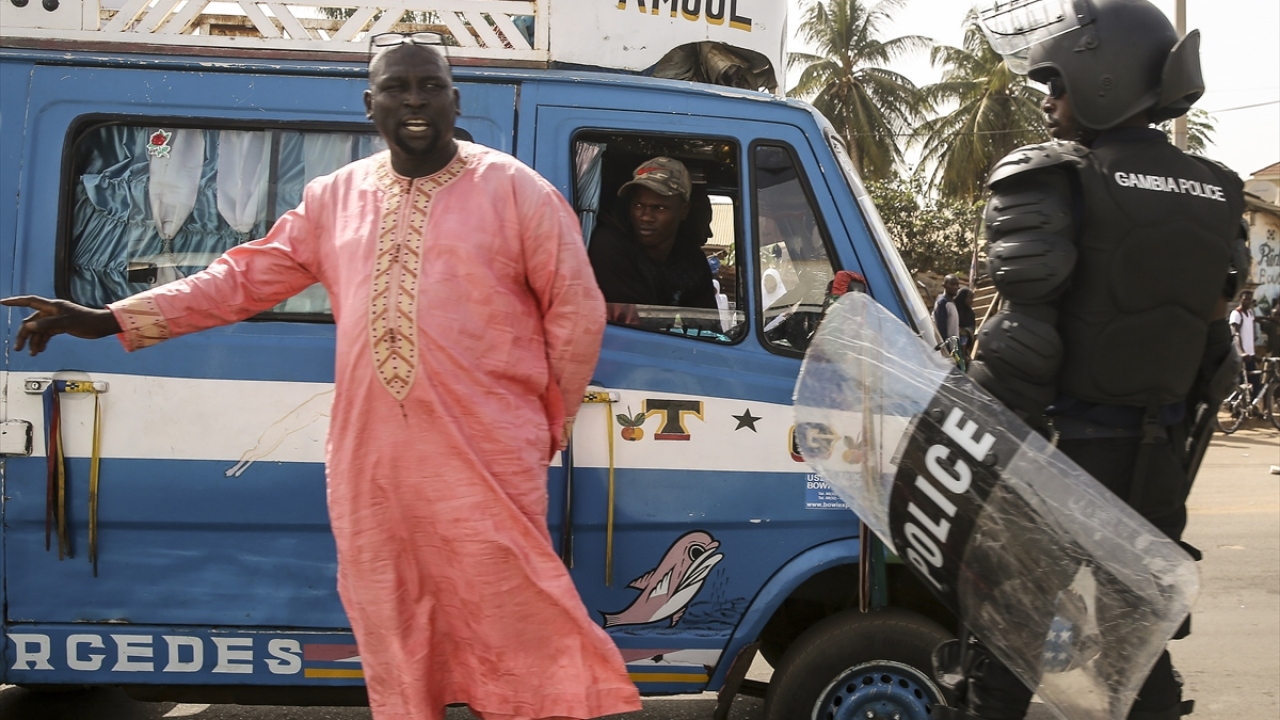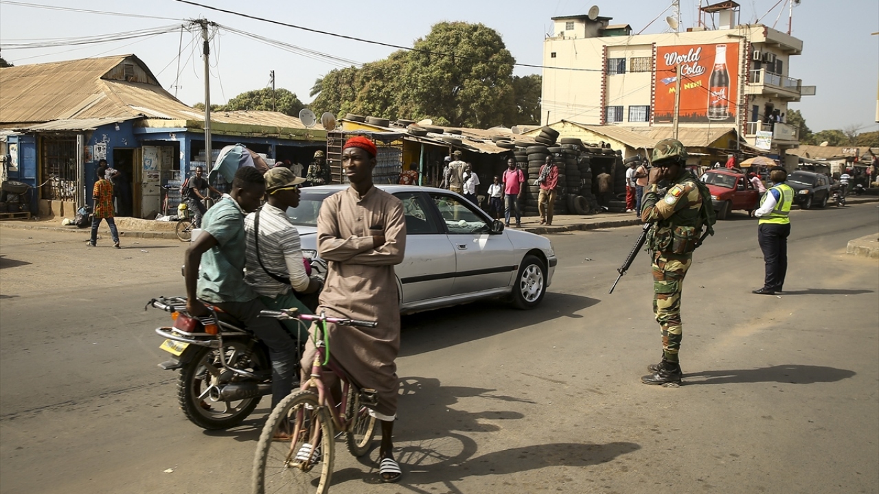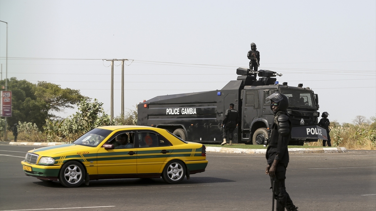 Fotoğrafta, başkent Banjul`daki sokaklarda güvenlik önlemleri alan Gambiya polisi görülüyor.