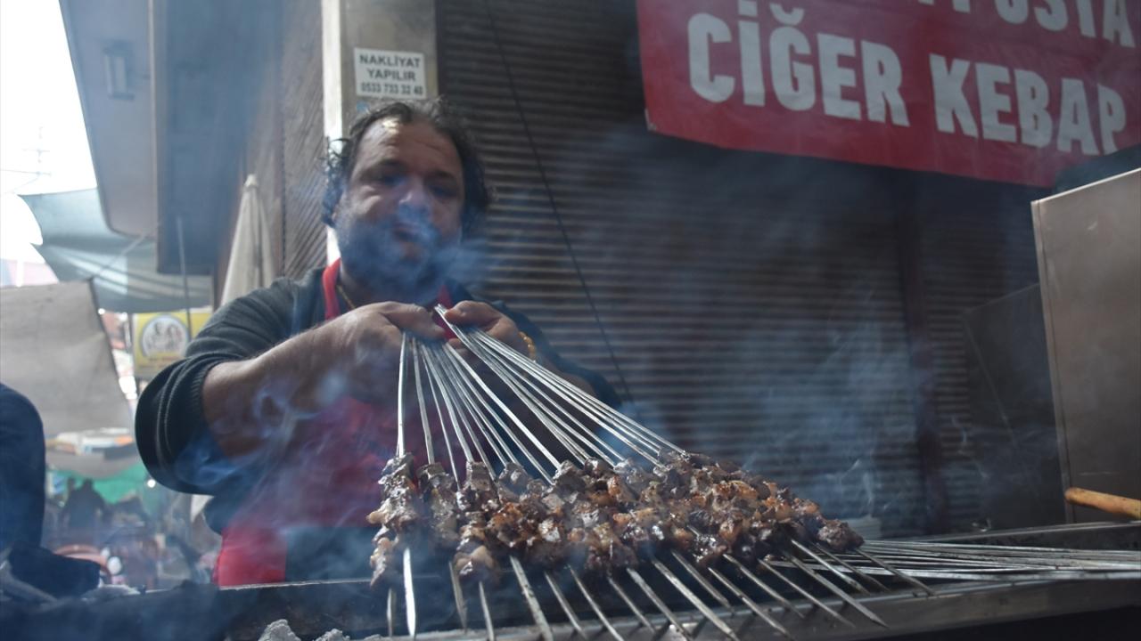 Kentteki ciğer ustalarından Cuma Akın, 32 yıldır bu işi yaptığını, ciğer kebabının eskiden az sayıda seyyar arabada pişirildiğini söyledi.