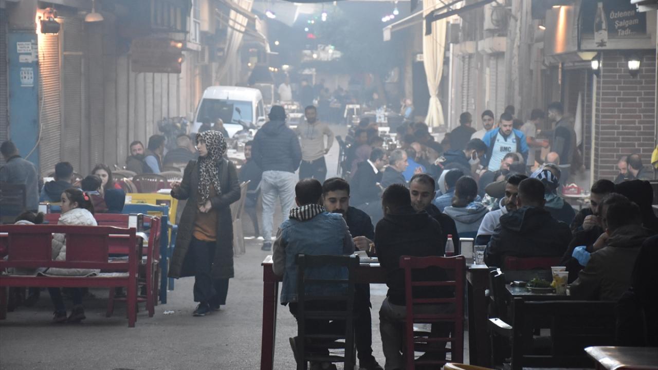 Sabah saatlerinden itibaren dumanların yükseldiği ve güzel kokuların yayıldığı sokağa gelen müşteriler, geleneksel kahvaltı masasındaki zeytin, peynir ve reçel gibi ürünler yerine bol acılı ciğer kebabı yiyor, çay yerine şalgam suyu içiyor.