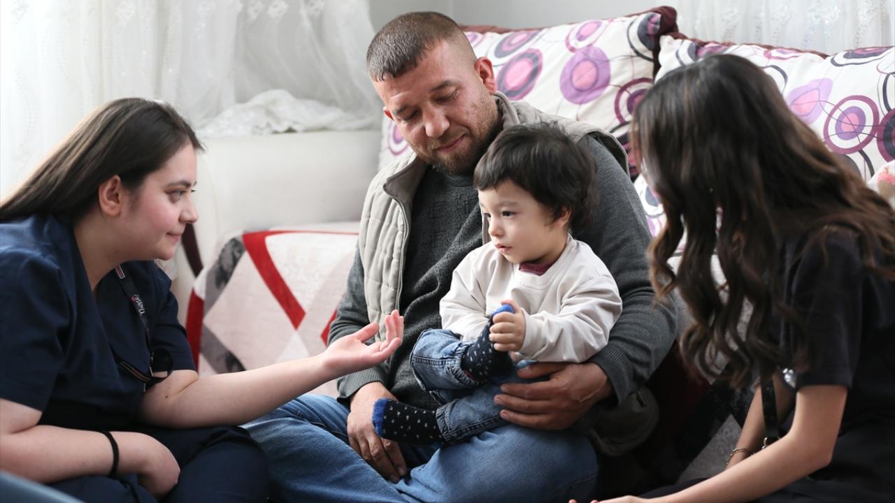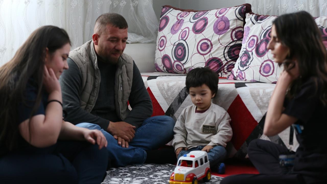 Pazarcık merkezli ilk depremde Gaziantep Büyükşehir Belediyesi İnayet Topçuoğlu Hastanesi`nde kuvözdeki bebekleri korumaya çalışırken güvenlik kamerasına yansıyan görüntülerle hafızalarda yer eden hemşire Gazel Çalışkan ve Devlet Nizam, o gün kuvözde yatan bebeklerden Mehmet Uğur Oğuz`u depremin ikinci yıl dönümünde evinde ziyaret etti.