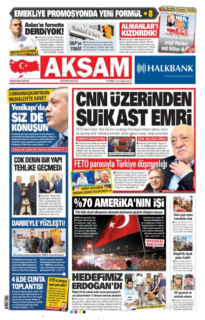 Gazete manşetleri (02.08.2016)