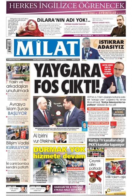 Gazete manşetleri (09 Ekim 2016)