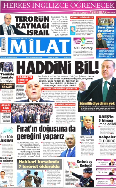 Gazete manşetleri (12 Ekim 2016)
