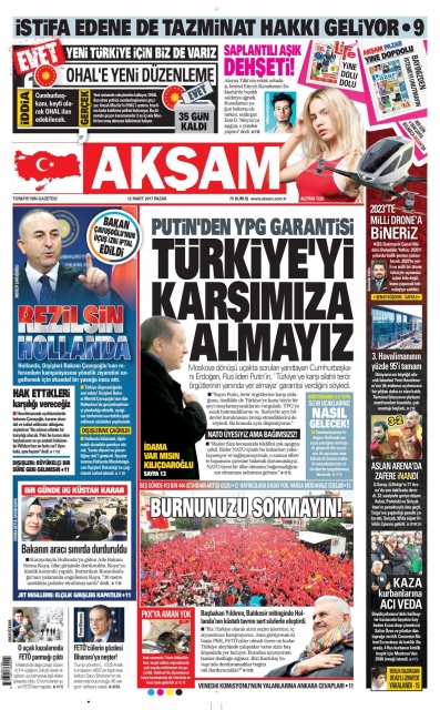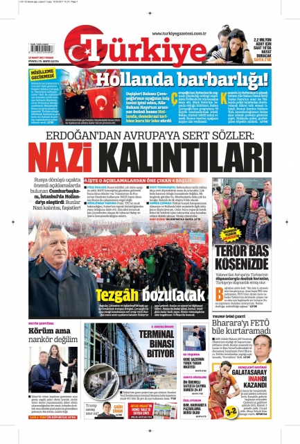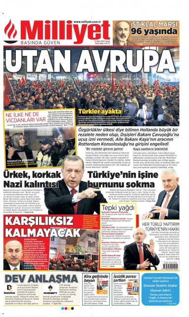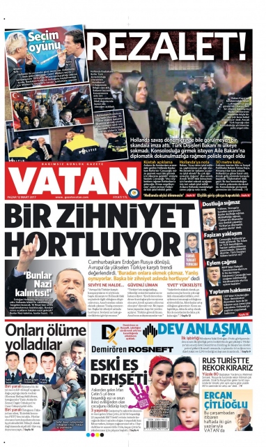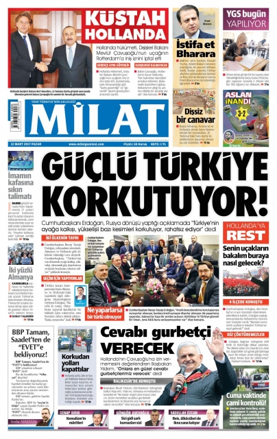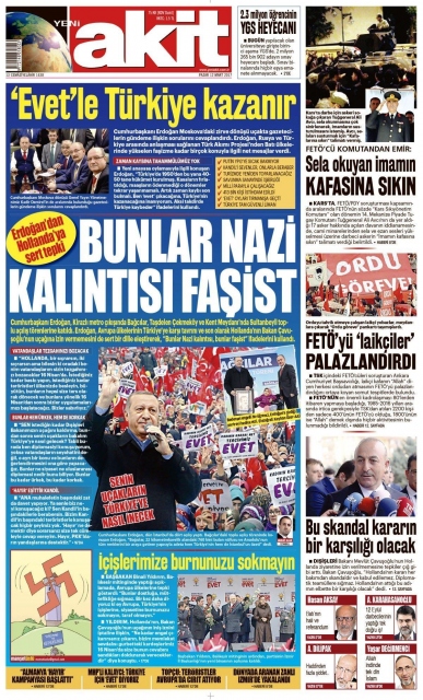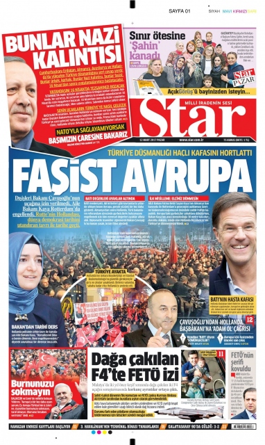 Hollanda'nın Aile ve Sosyal Politikalar Bakanı Fatma Betül Sayan Kaya'ya yönelik skandal uygulaması gazete manşetlerinde.