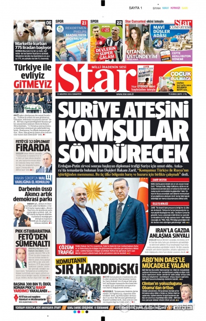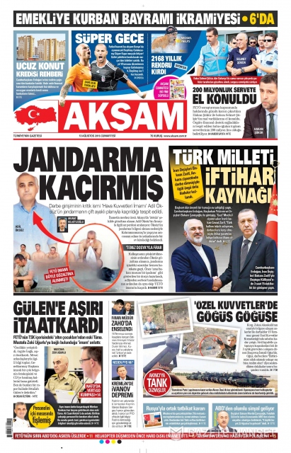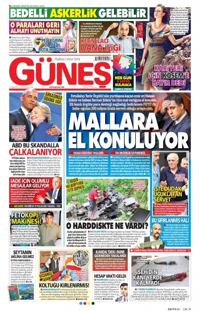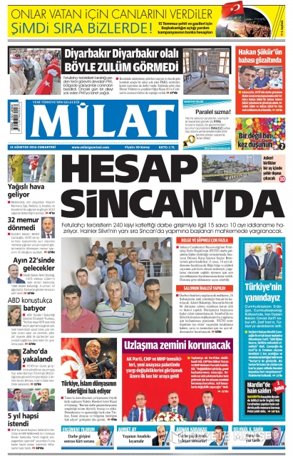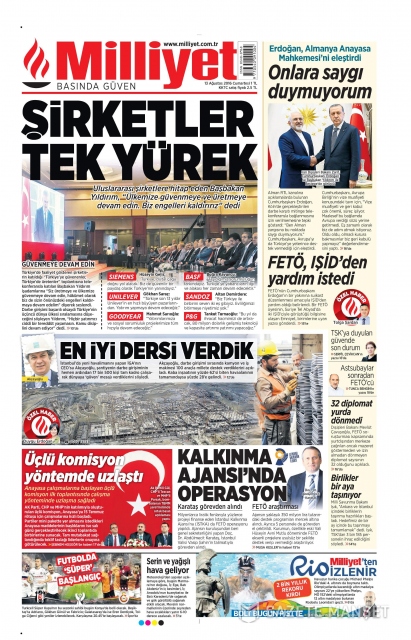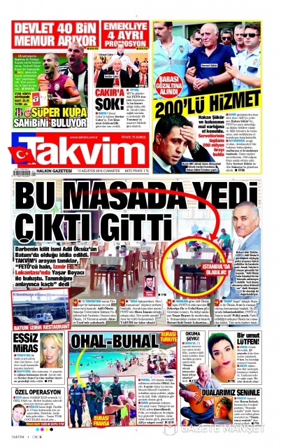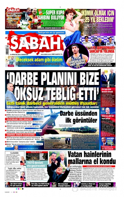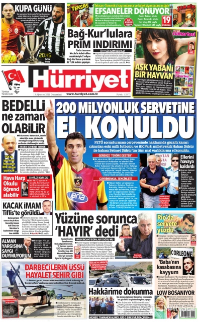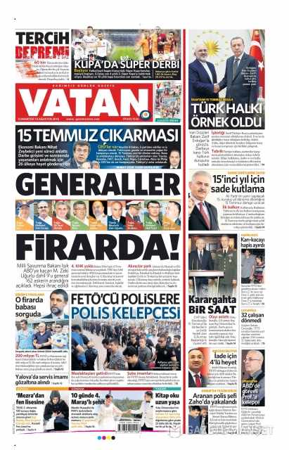 Gazete manşetleri (13 Ağustos 2016)