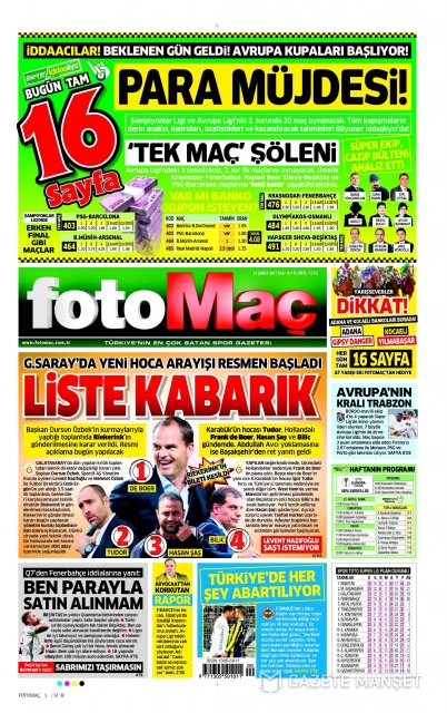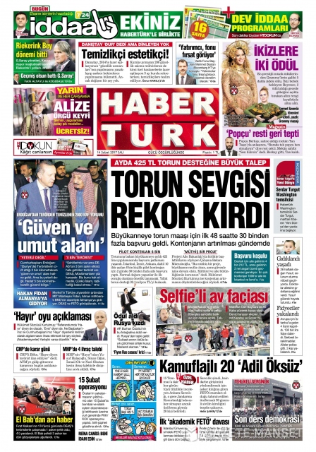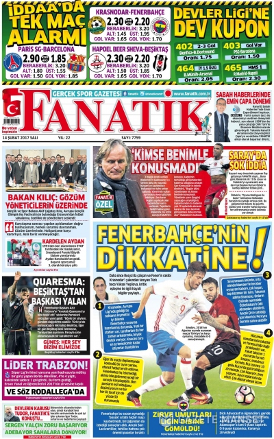 Gazete manşetleri (14 Şubat 2017)