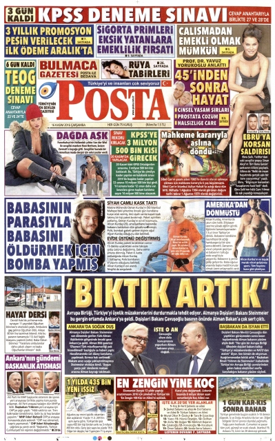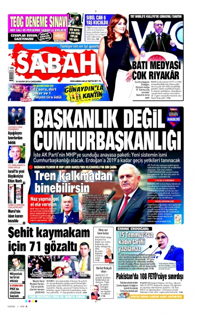Gazete manşetleri (16 Kasım 2016)