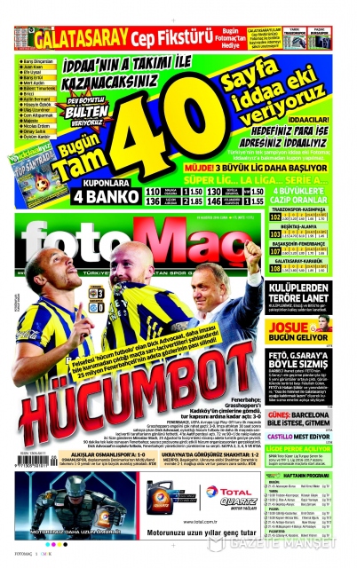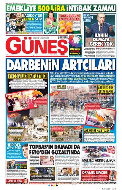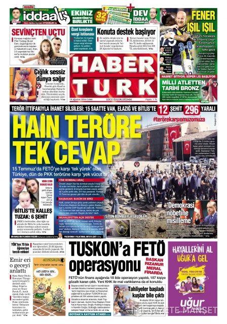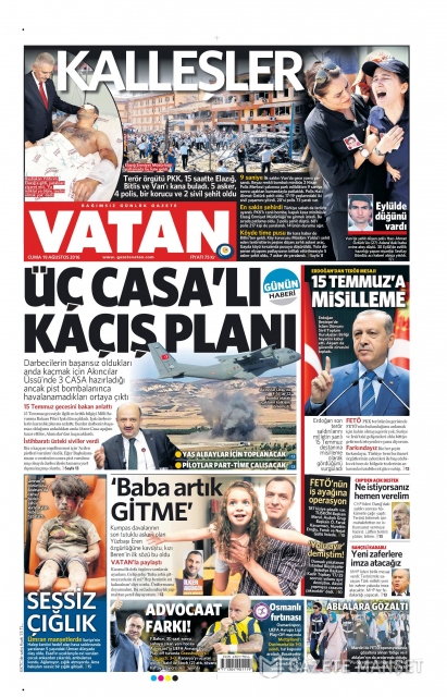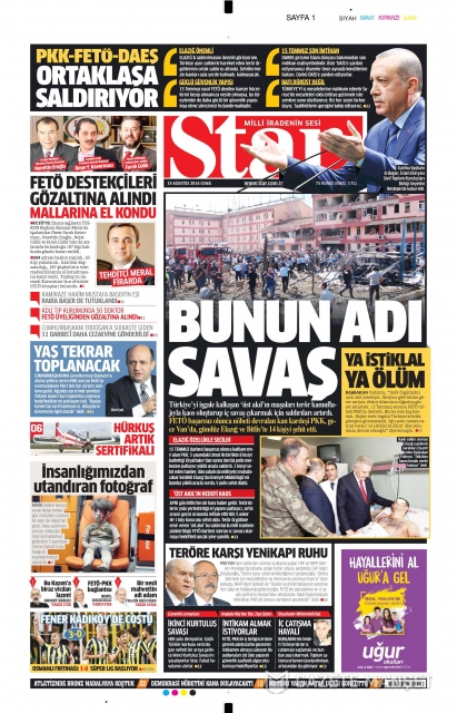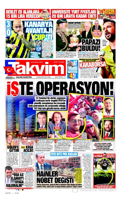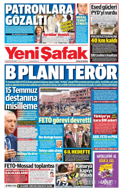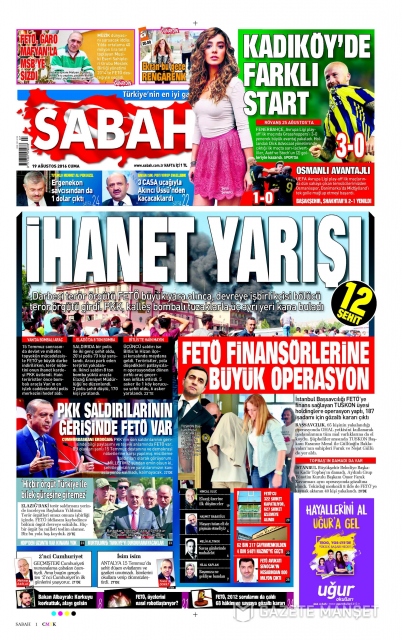 Gazete manşetleri (19 Ağustos 2016)