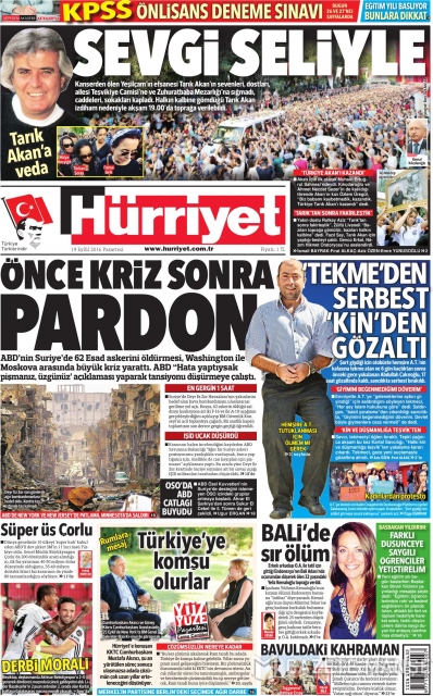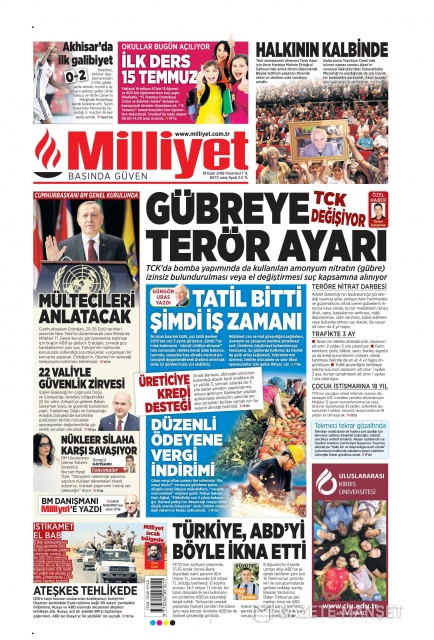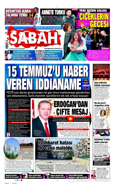 Gazete manşetleri (19.09.2016)