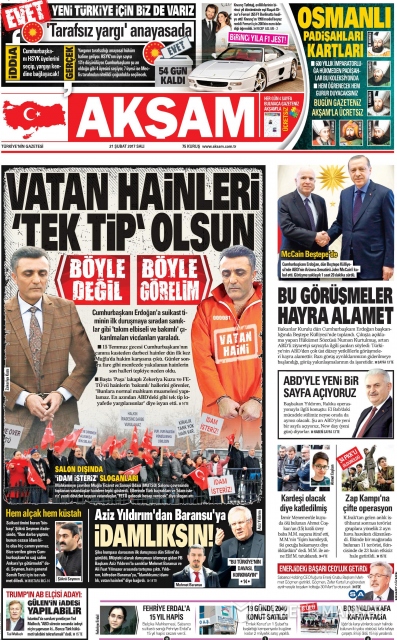 Gazete manşetleri (21 Şubat 2017)