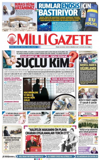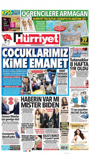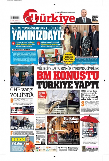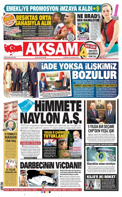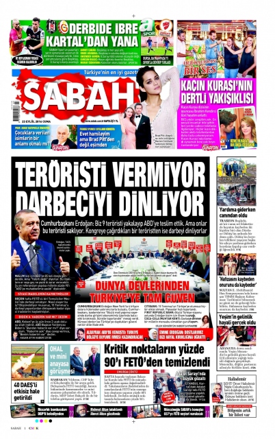 Gazete manşetleri (23 Eylül 2016)