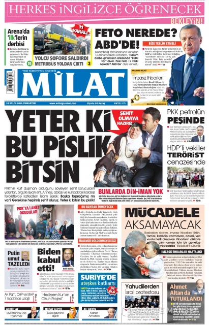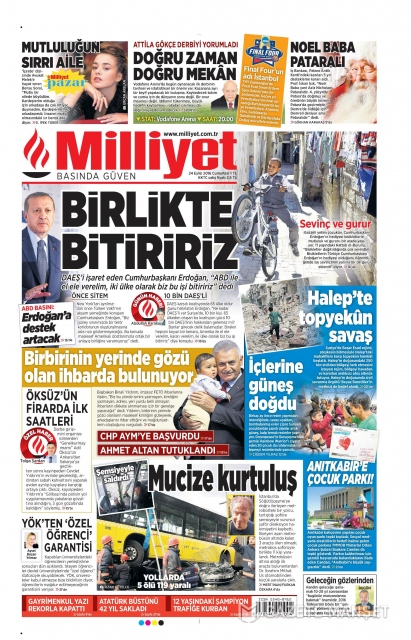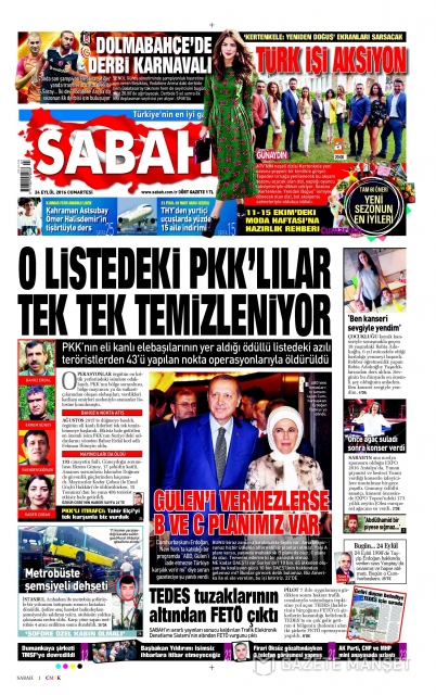 Gazete manşetleri (24 Eylül 2016)