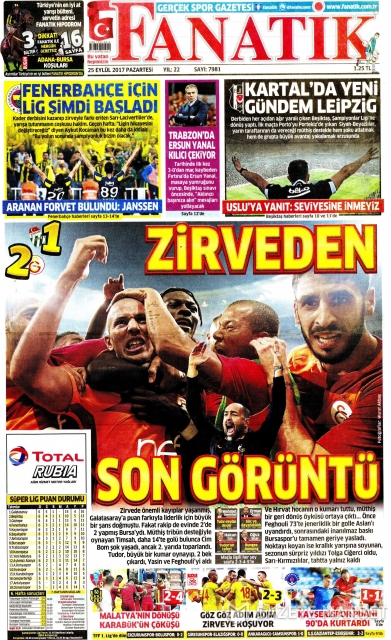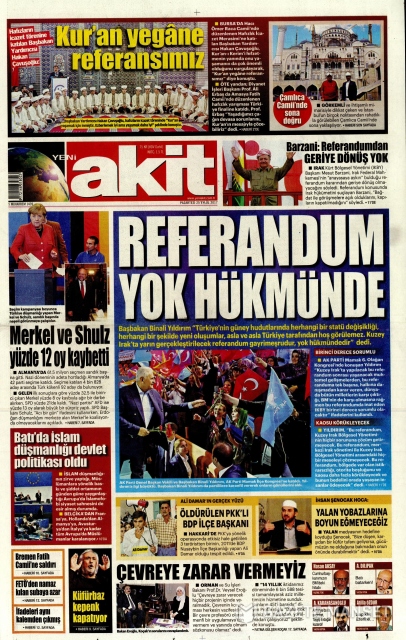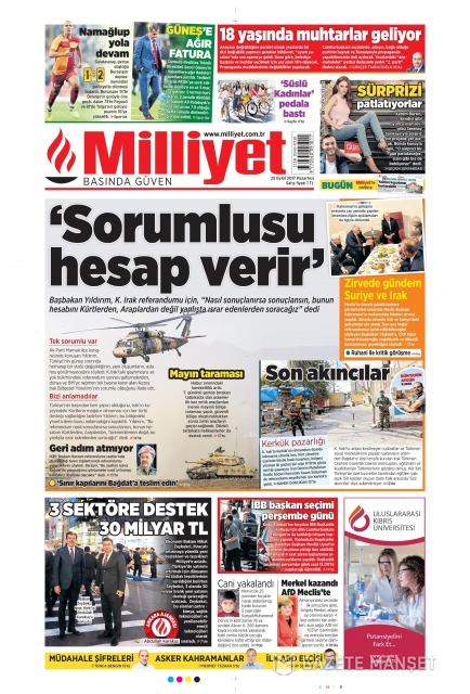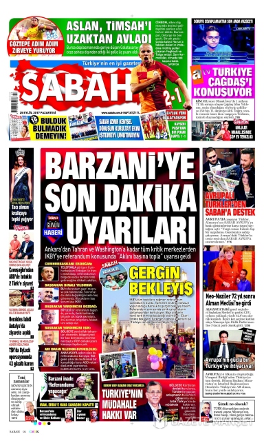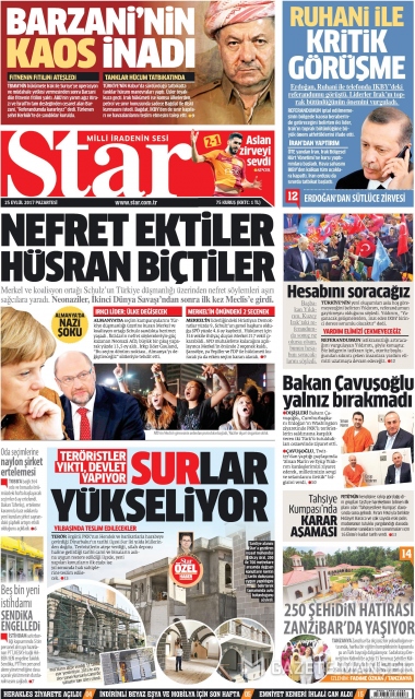 Gazete manşetleri (25 Eylül 2017)