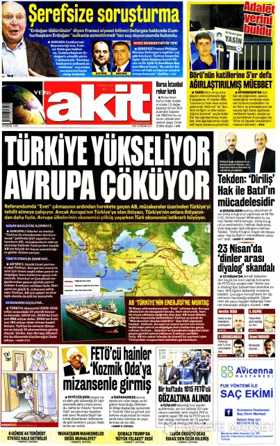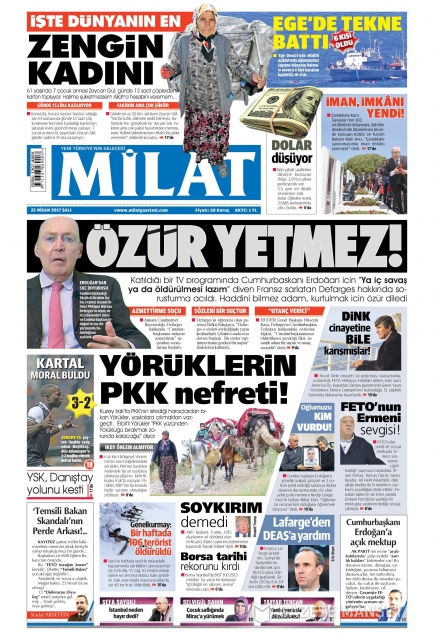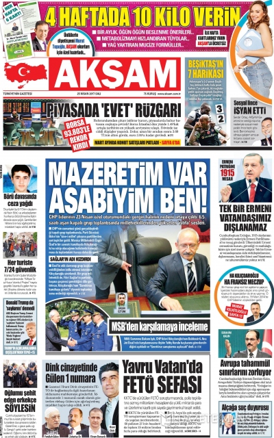 Gazete manşetleri (25 Nisan 2017)