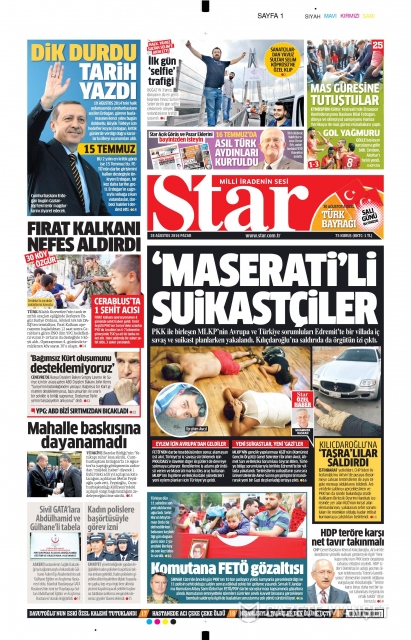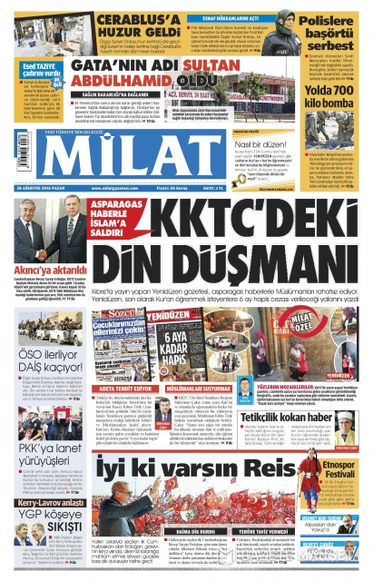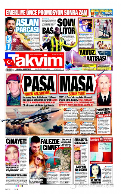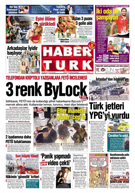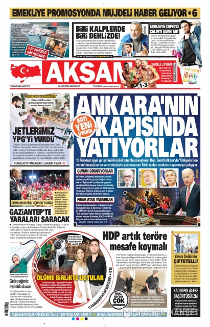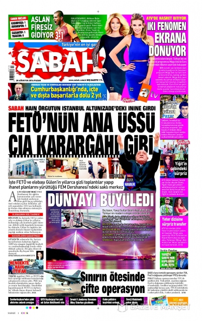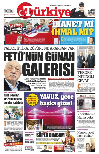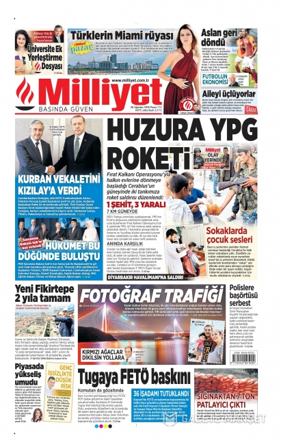 Gazete manşetleri (28 Ağustos 2016)