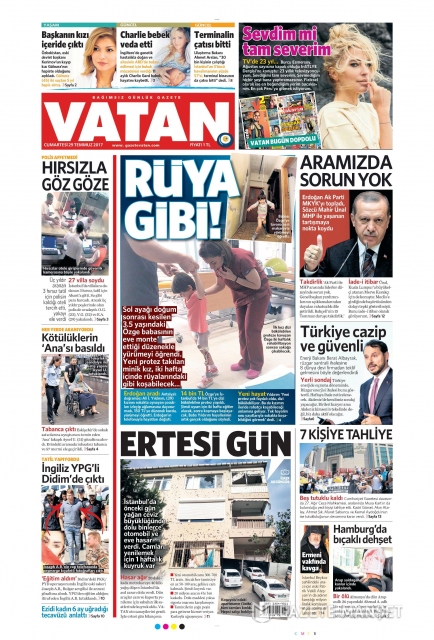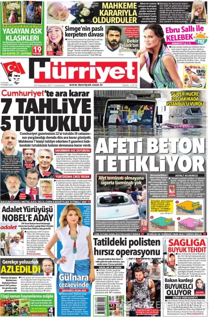 Gazete manşetleri (29 Temmuz 2017)