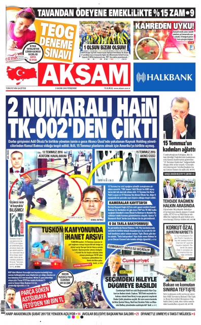 Gazete manşetleri (3 Kasım 2016)