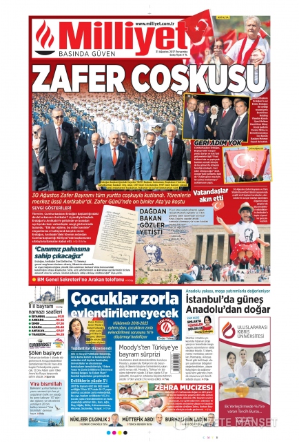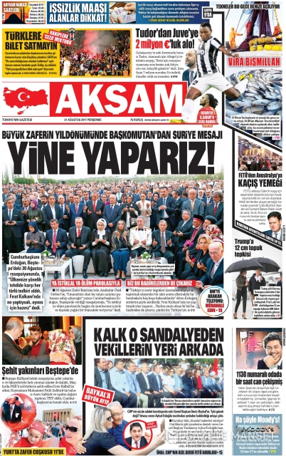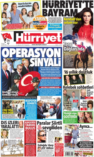 Gazete manşetleri (30 Ağustos 2017)