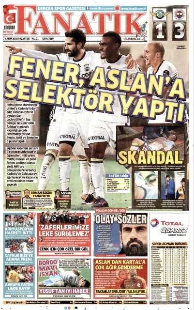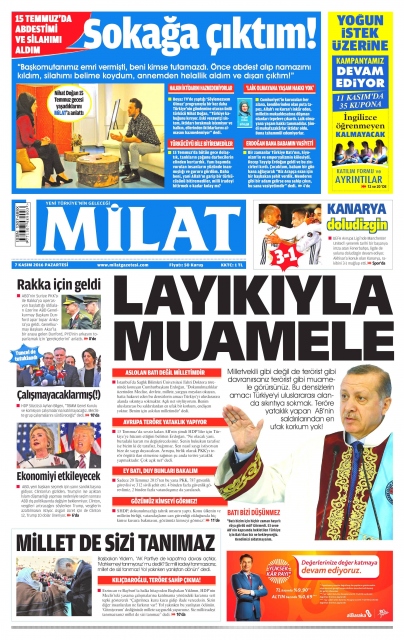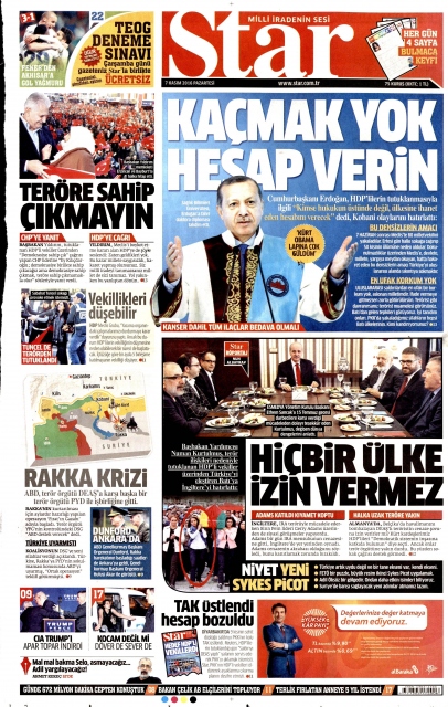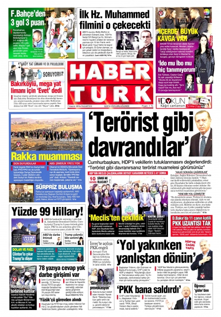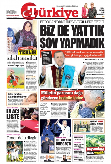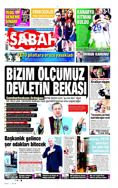 Gazete manşetleri (7 Kasım 2016)