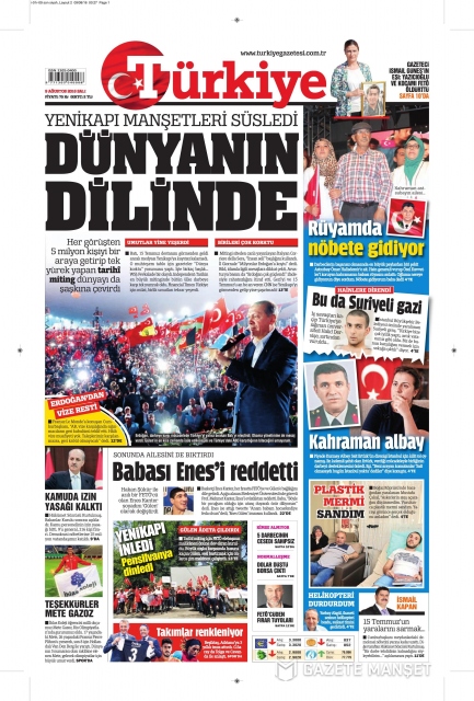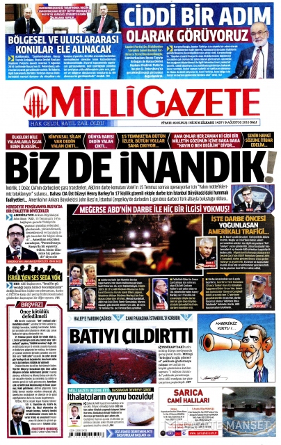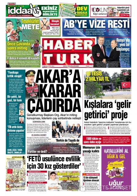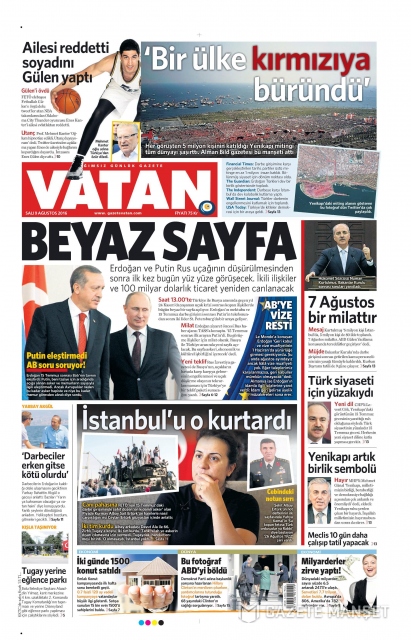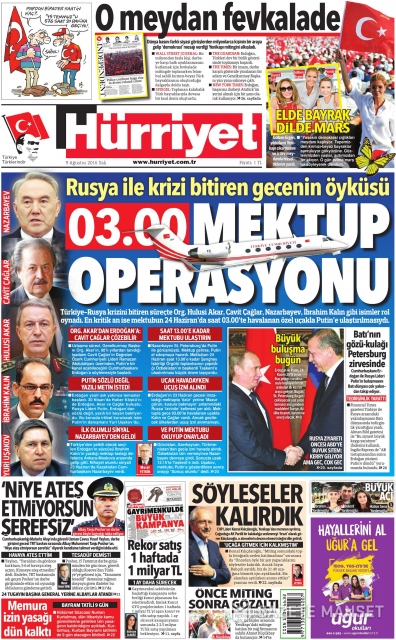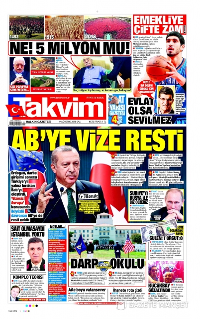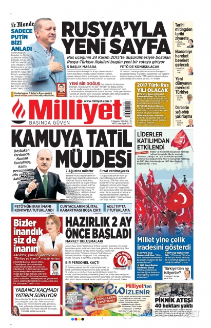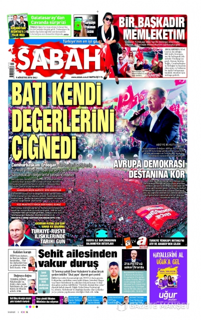 Gazete manşetleri (9 Ağustos 2016)