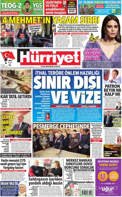 Gazete manşetleri (9 Ocak 2017)