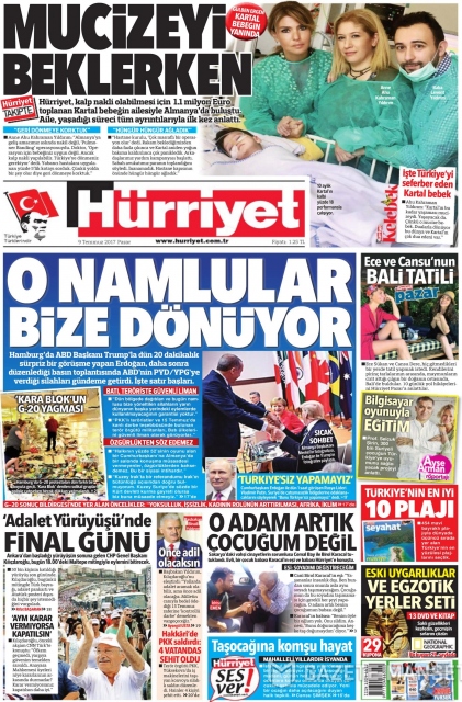 Gazete manşetleri (9 Temmuz 2017)