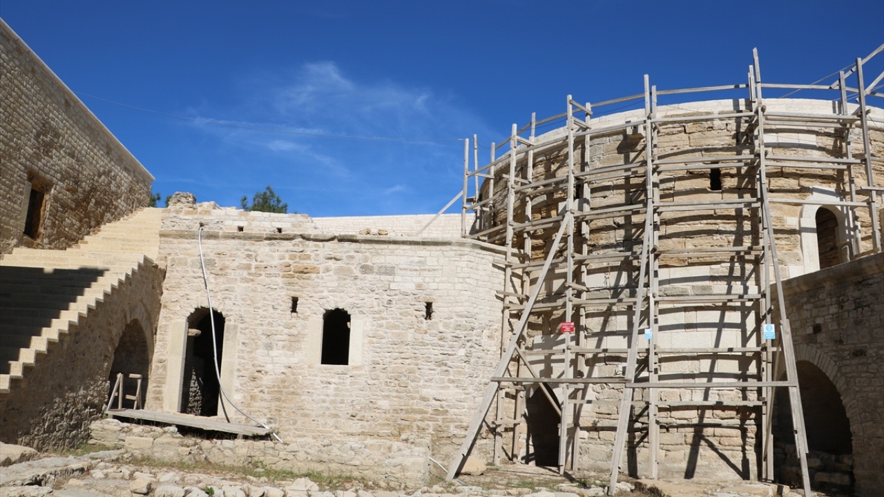 Kale içindeki yapıların yıkılmış veya zarar görmüş kısımları da aslına uygun olarak yenileniyor.