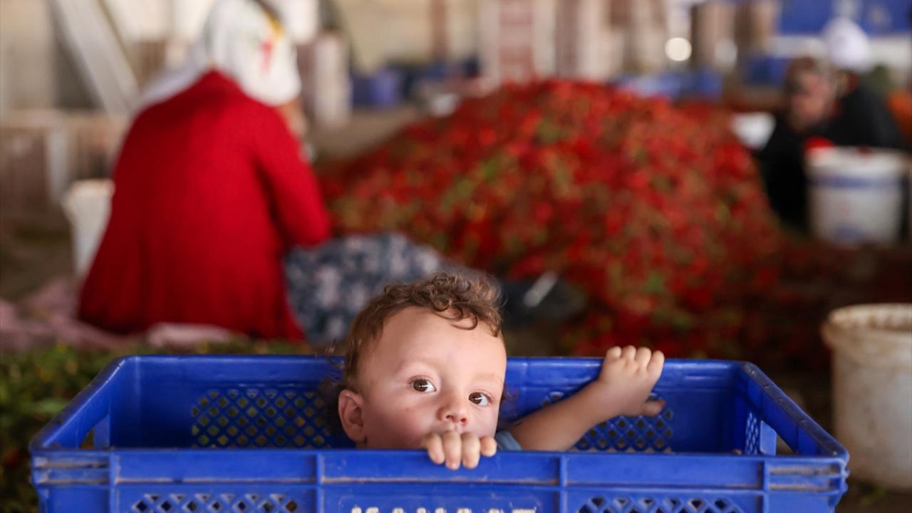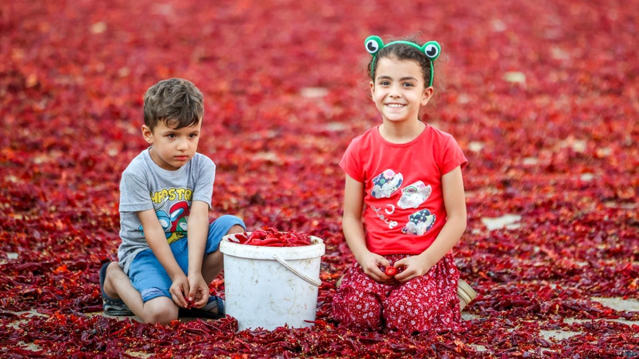 Kahramanmaraş merkezli 6 Şubat 2023'teki depremlerden etkilenen Gaziantep'in İslahiye ilçesinde 26 bin dekar alanda üretilen biberler, depremzede mevsimlik işçilerin ellerinde lezzet buluyor.