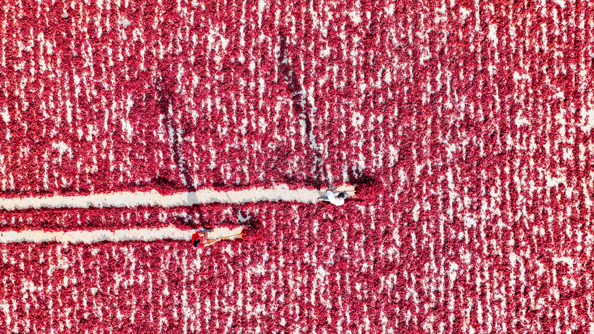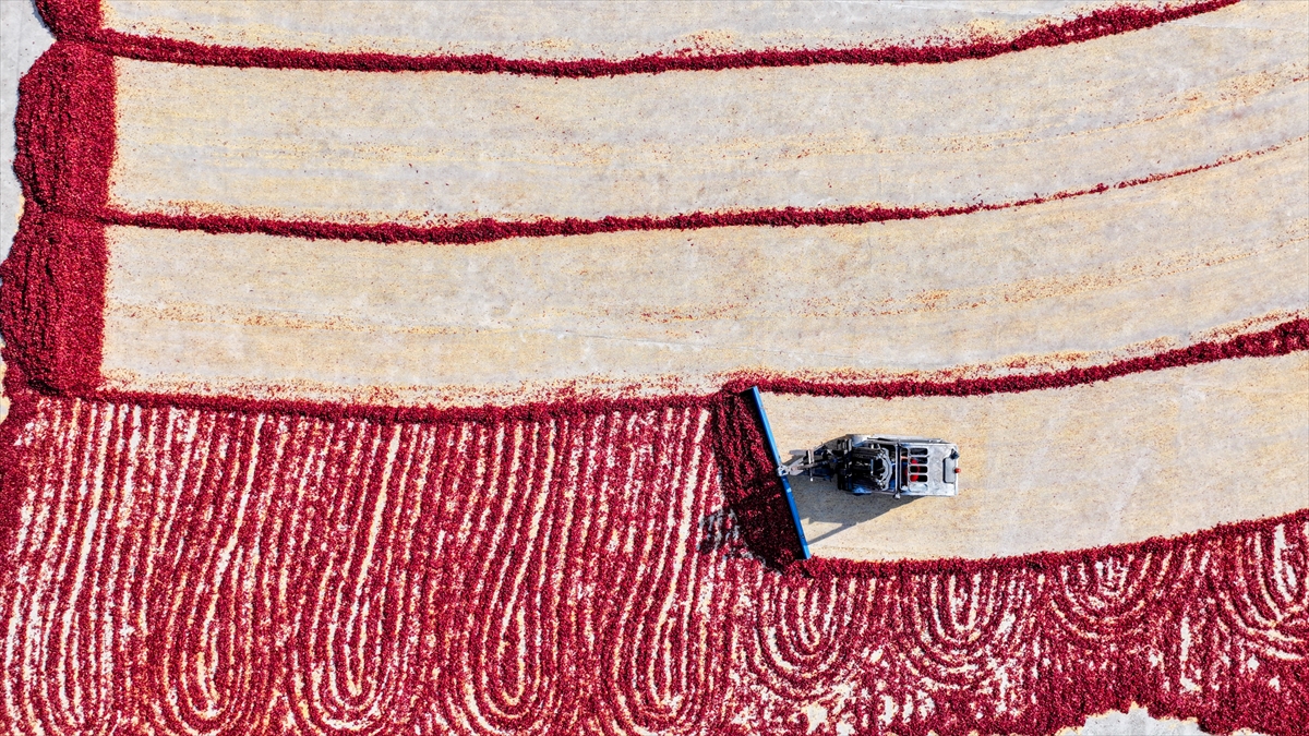 Yoğun mesai harcayan işçiler, ilk olarak biberi saplarından ayırıyor. Ardından makineden geçirilen biberler, güneşlenmesi için büyük alanlara seriliyor.