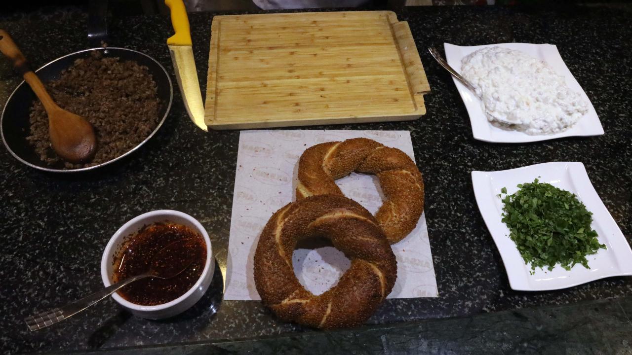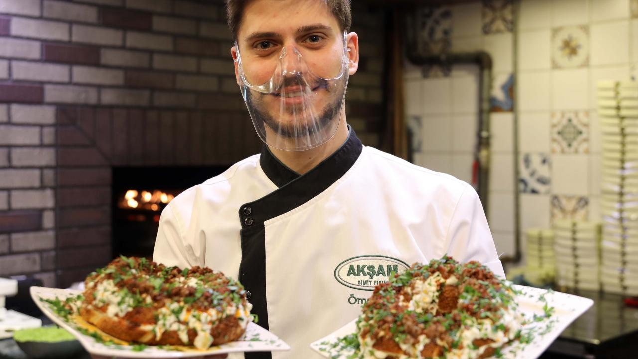 Gaziantep'te simitçi Ömer Aksu, yoğun ilgi gören simit ve imambayıldı yemeğini birleştirerek yeni bir lezzet ortaya çıkardı.