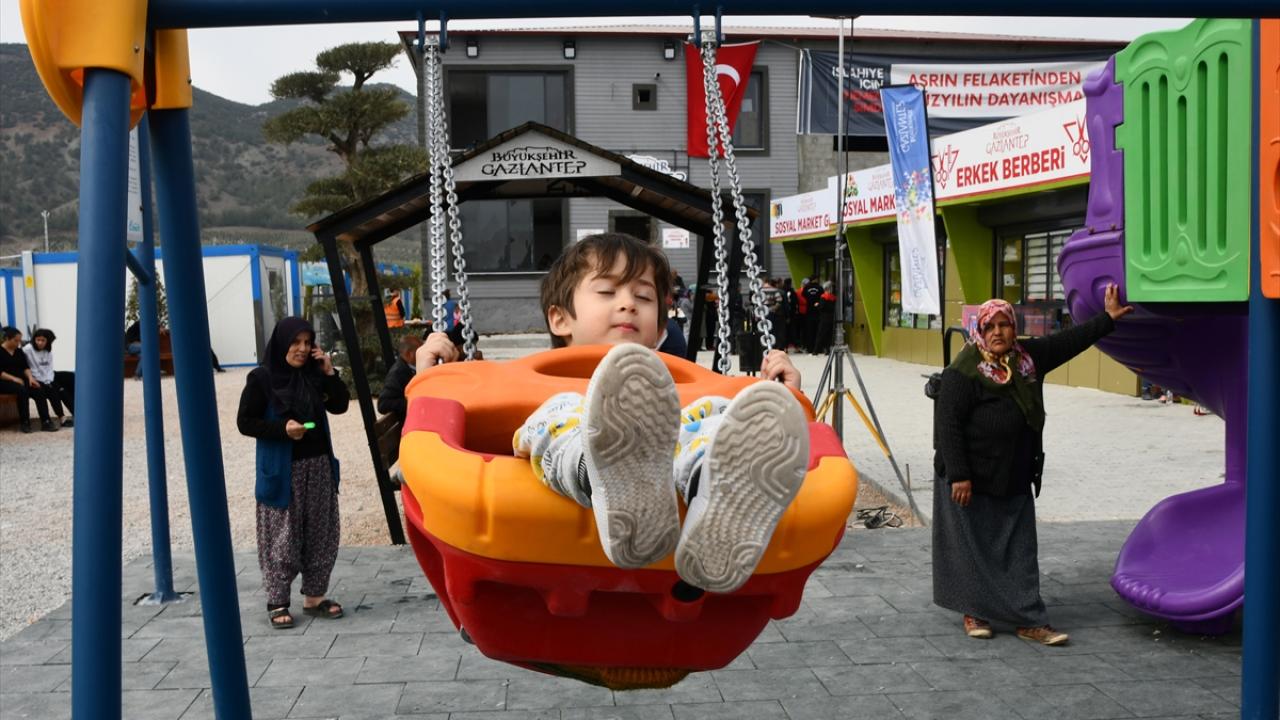 Evren, çok büyük bir afet yaşadıklarını vurgulayarak, "Çok kötü deprem geçirdik, ondan sonra da devlet sağ olsun hemen yardıma ulaştı. Her şeyimizi karşıladılar. Allah razı olsun verenlerden, getirenlerden, herkesten. Oyun alanları da çok güzel, torunlarım oynuyorlar." dedi.
