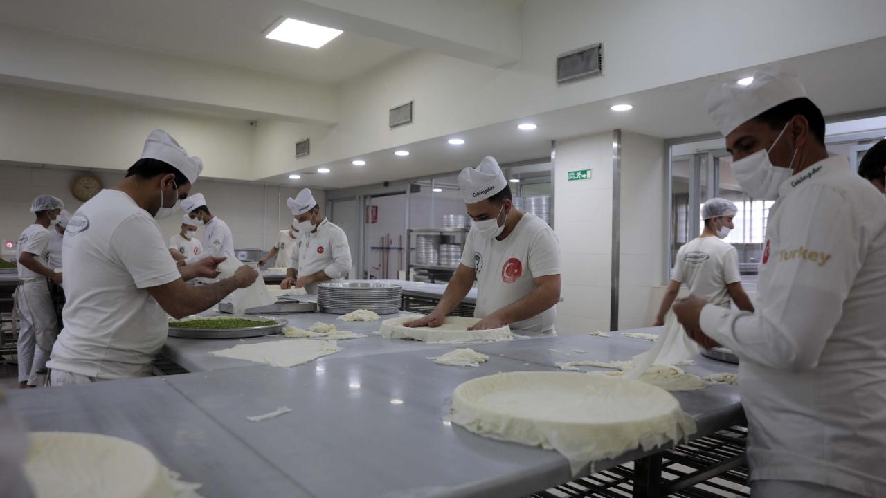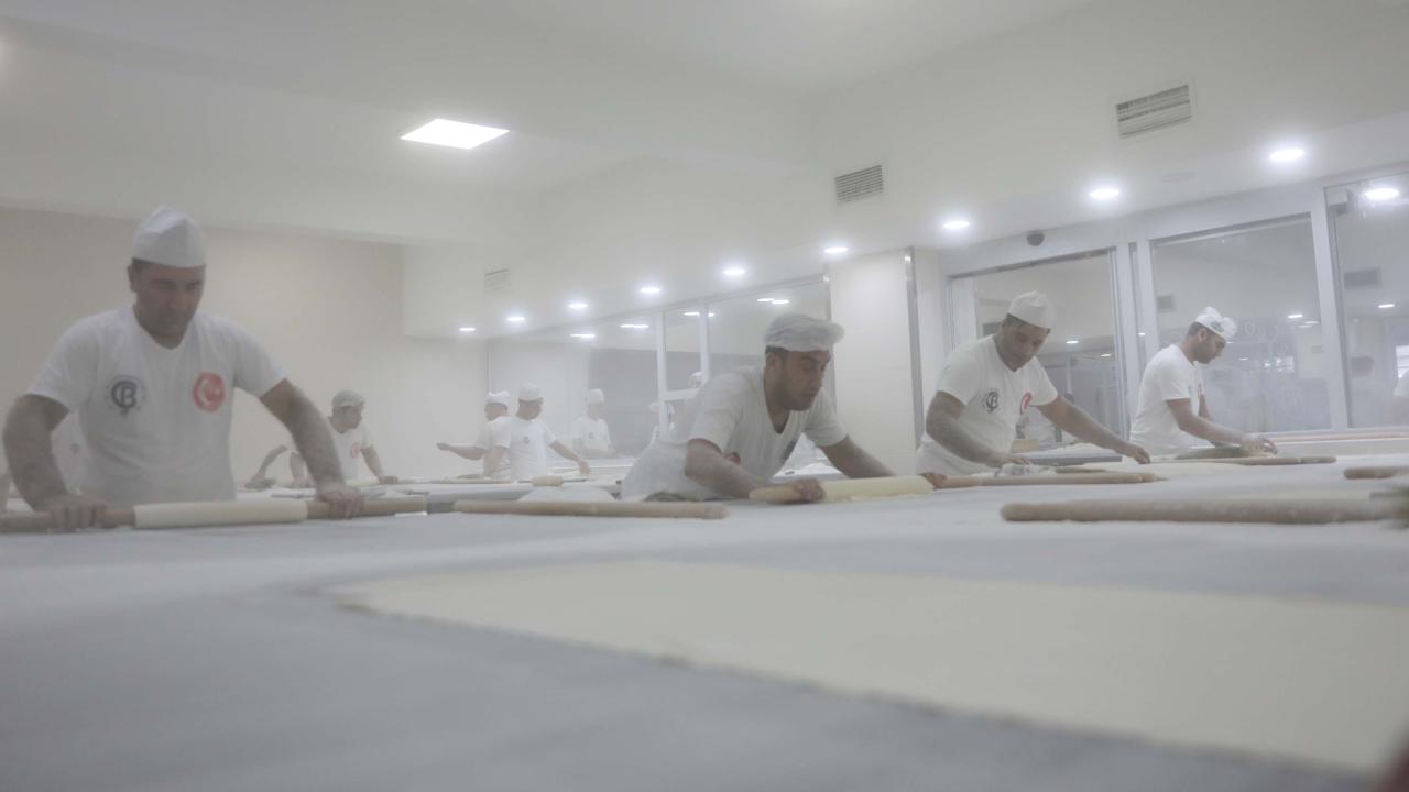 Gaziantep'te baklava ustaları, Ramazan Bayramı için gelen talepleri karşılayabilmek için yoğun mesai harcıyor. Kentte bayram öncesi baklava üretimi 2 kat arttı.
