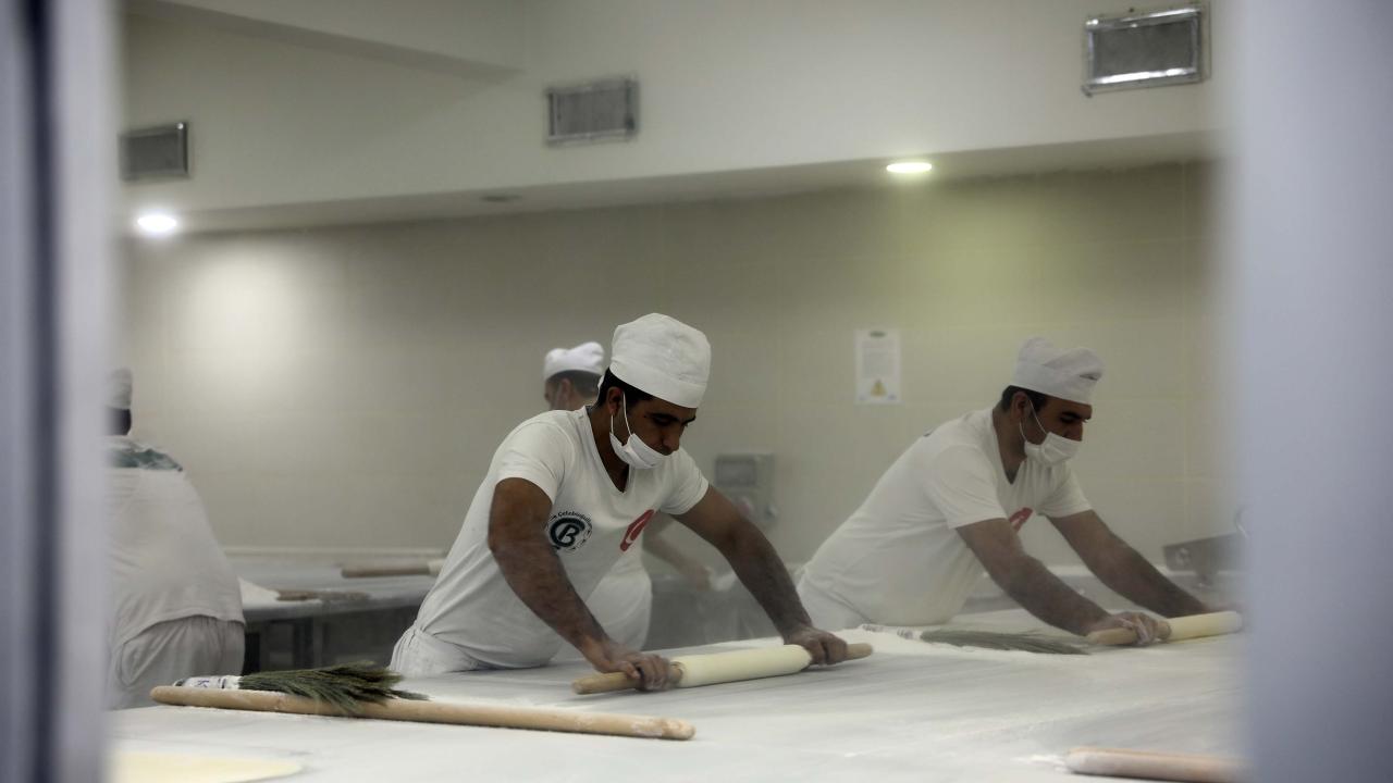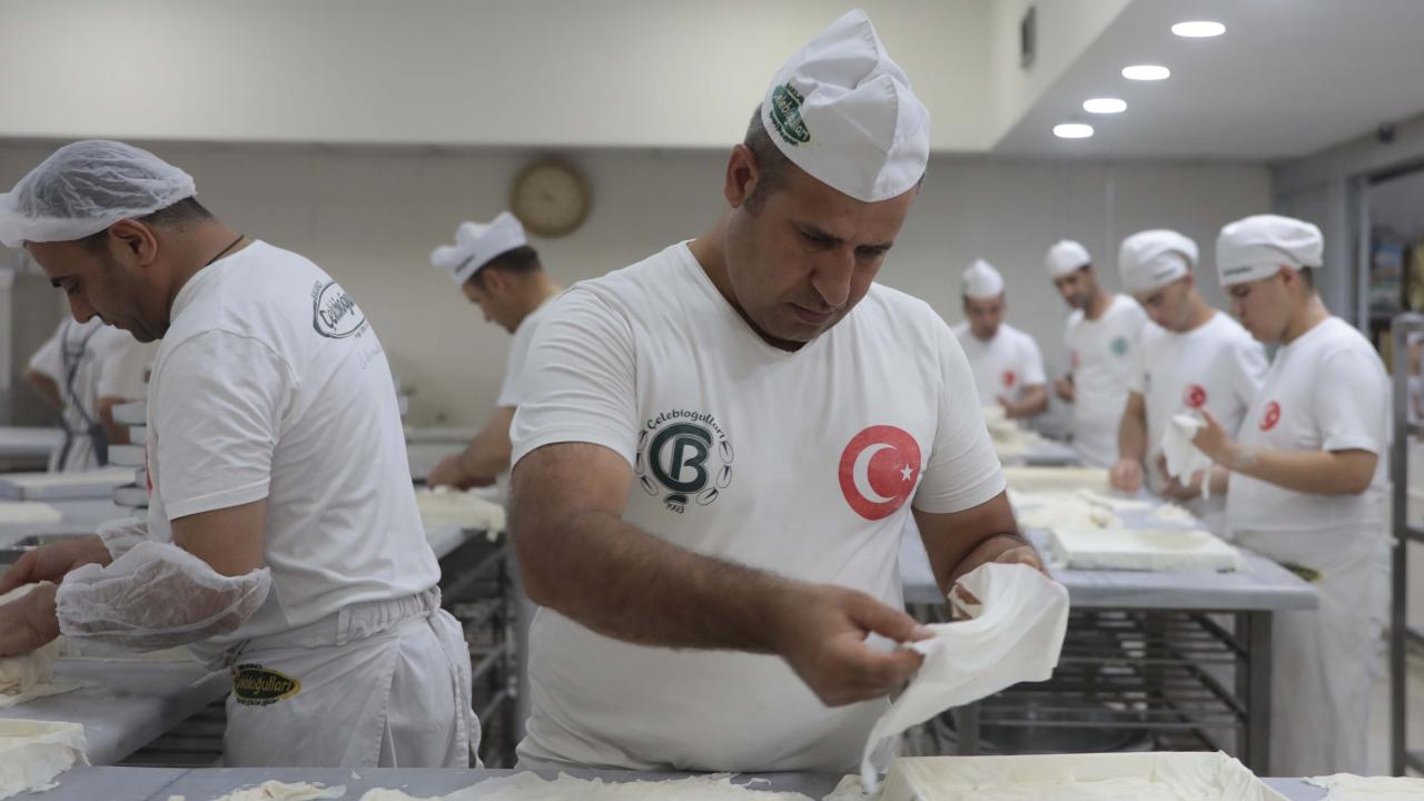 Baklavacılara, Türkiye ve dünyanın dört bir yanından sipariş yağarken, baklava ustaları şafak vakti başladıkları üretimi, iftar saatine kadar sürdürüyor.