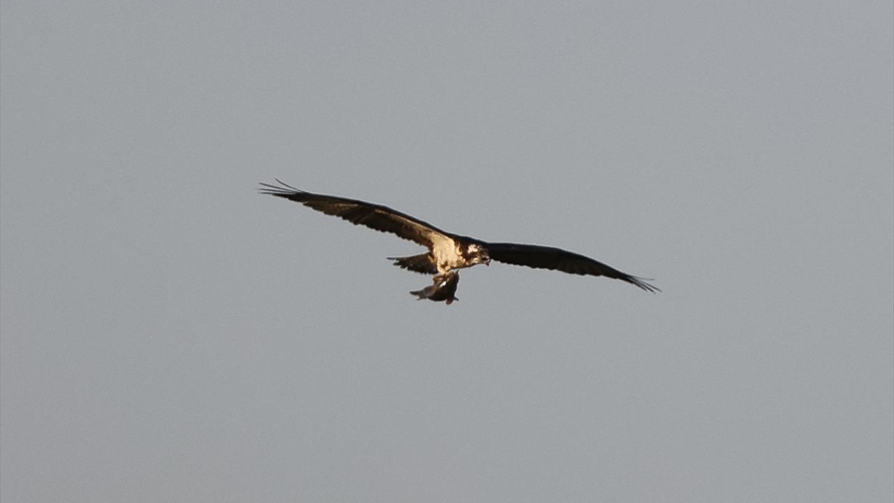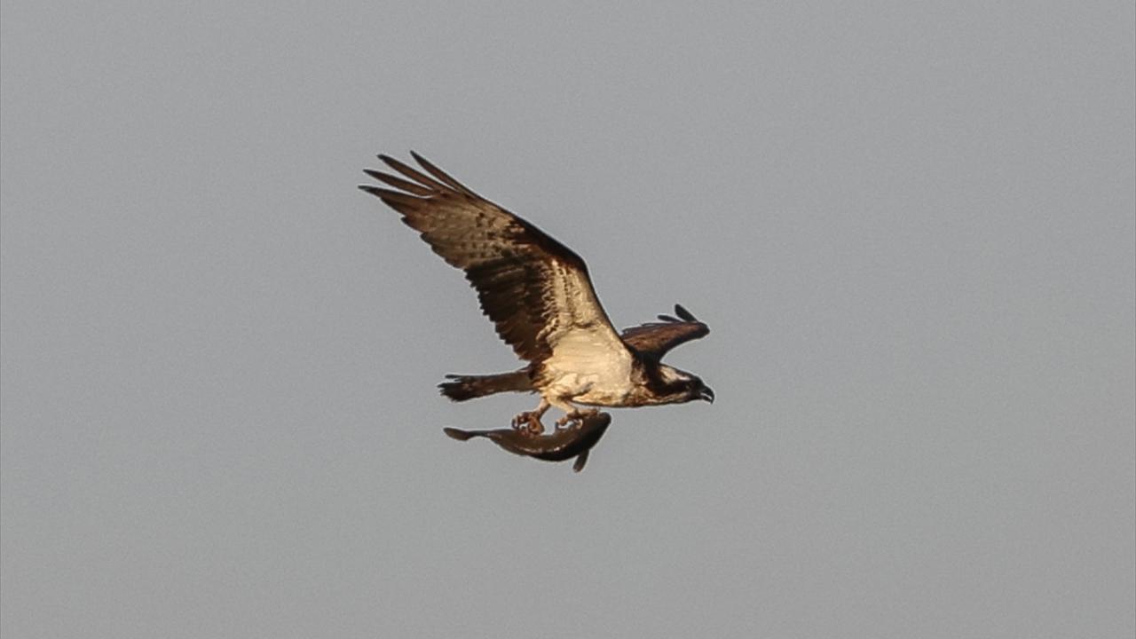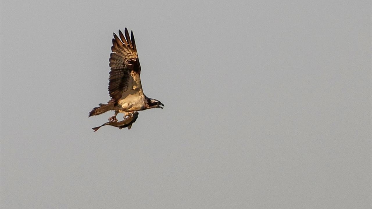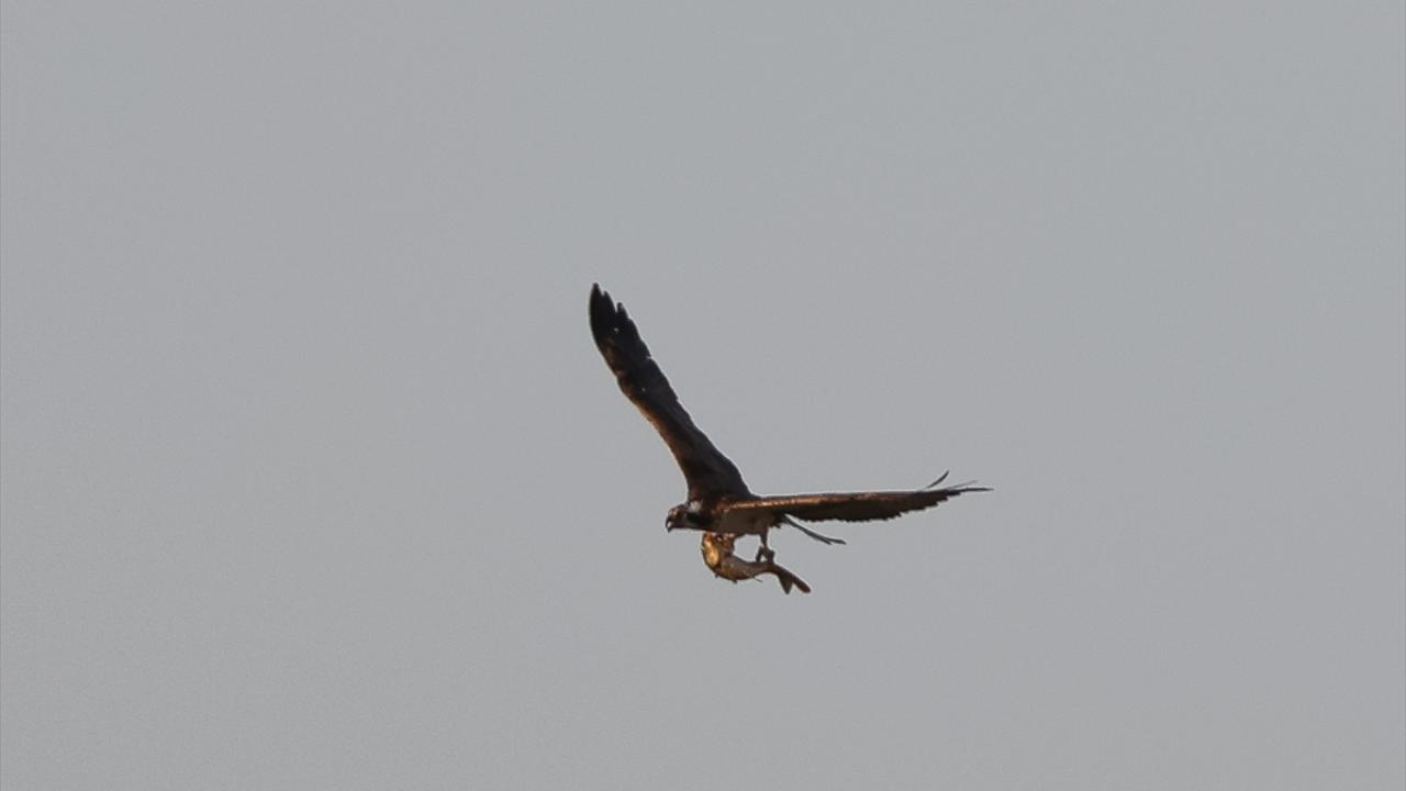 Sulak alana gelen balıkçı kartalı, avı ile görüntülendi.