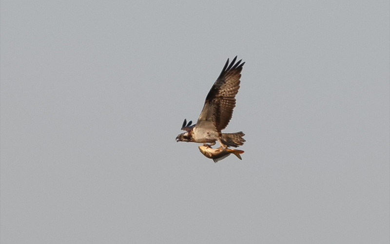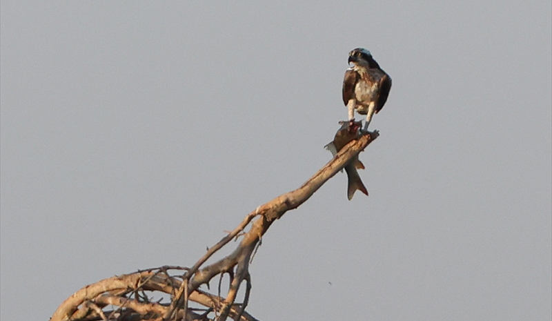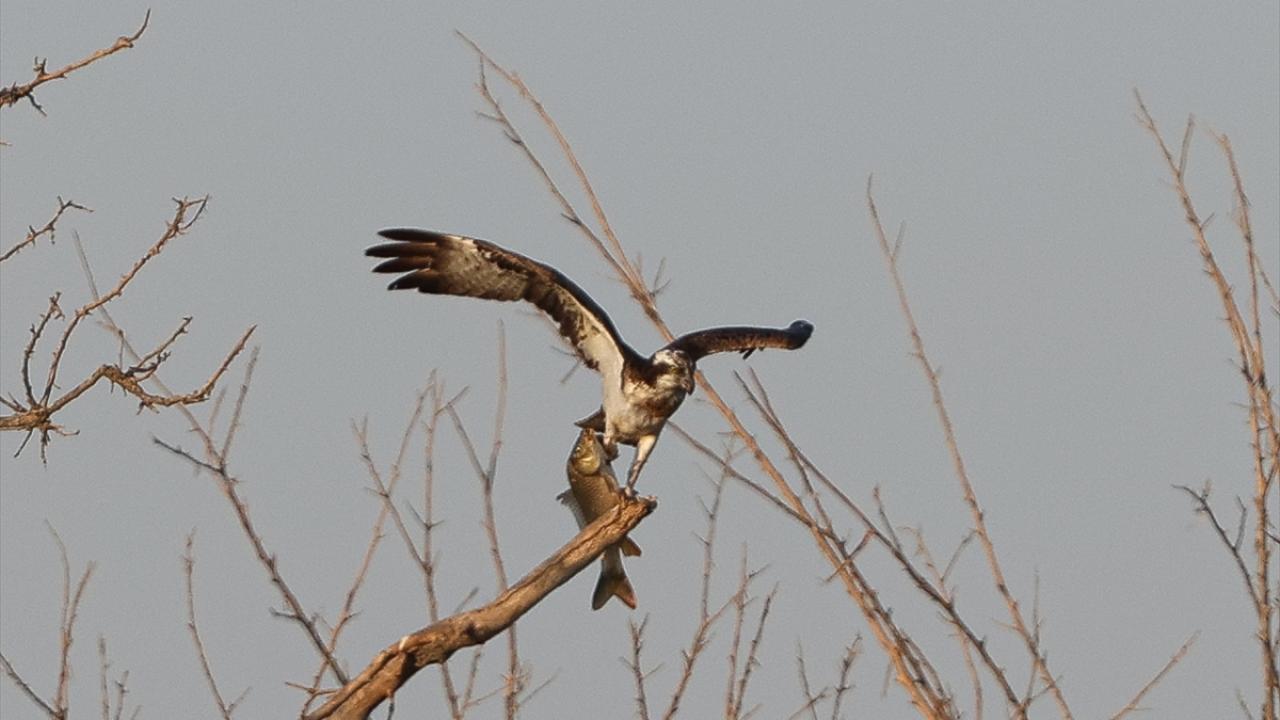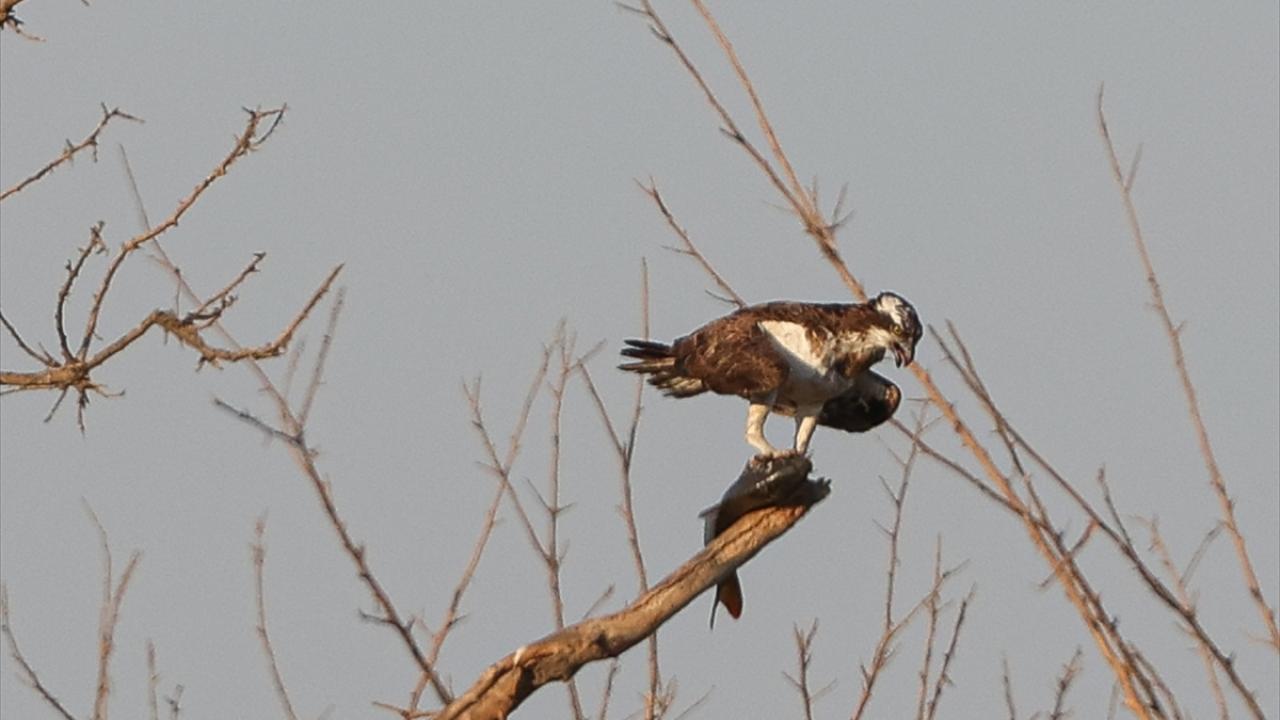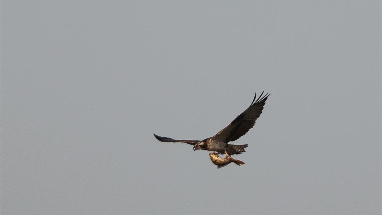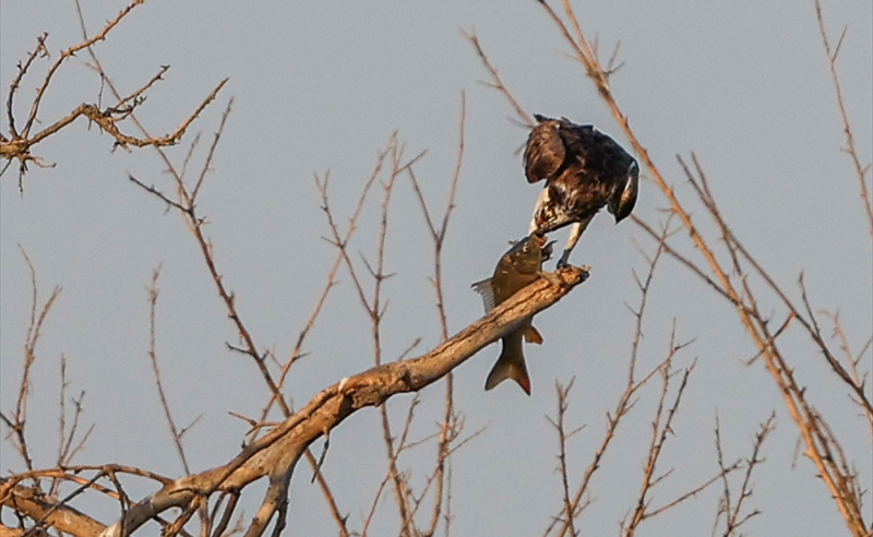 Sulak alana gelen balıkçı kartalı, avı ile görüntülendi.