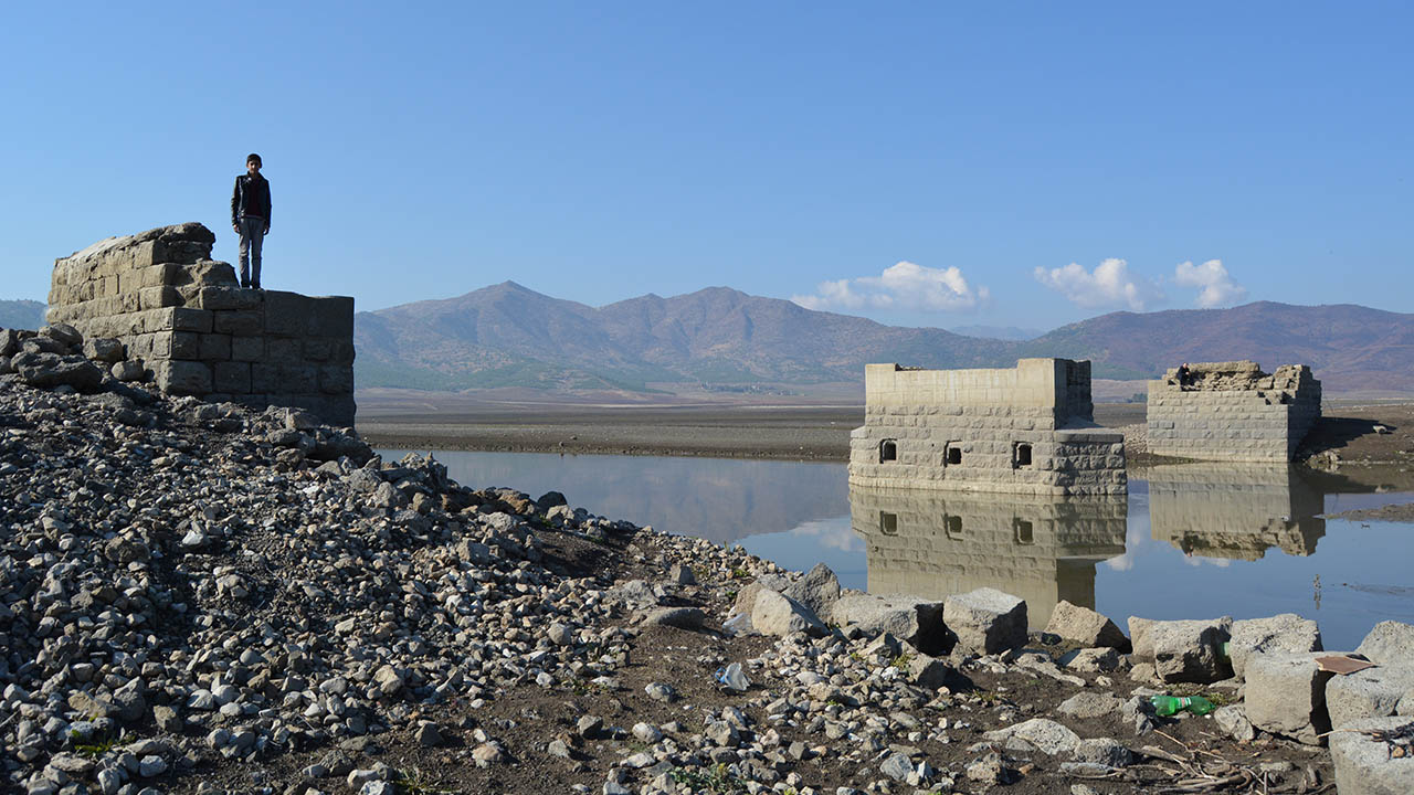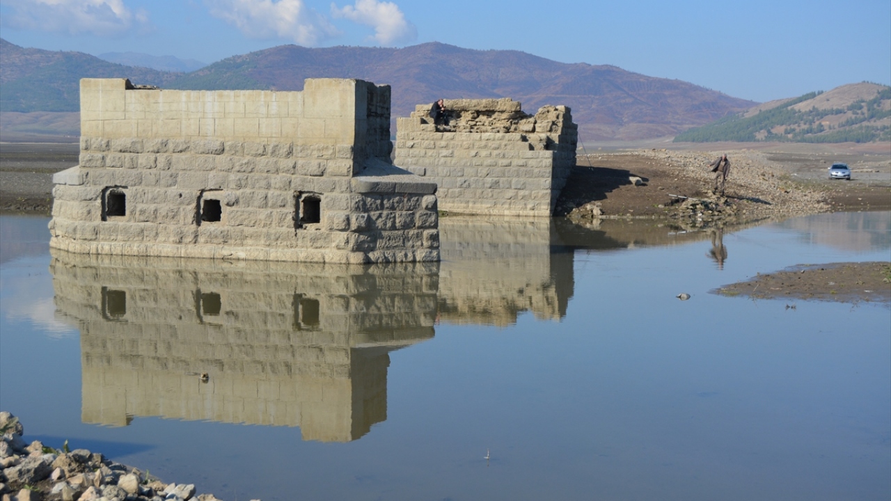 Barajda yapılan yükseltme çalışmaları nedeniyle suların çekilmesiyle Suriye sınırına doğru giden demiryolunun geçtiği köprüyle rayların altına serilen taşlar rahatlıkla görünür hale geldi.