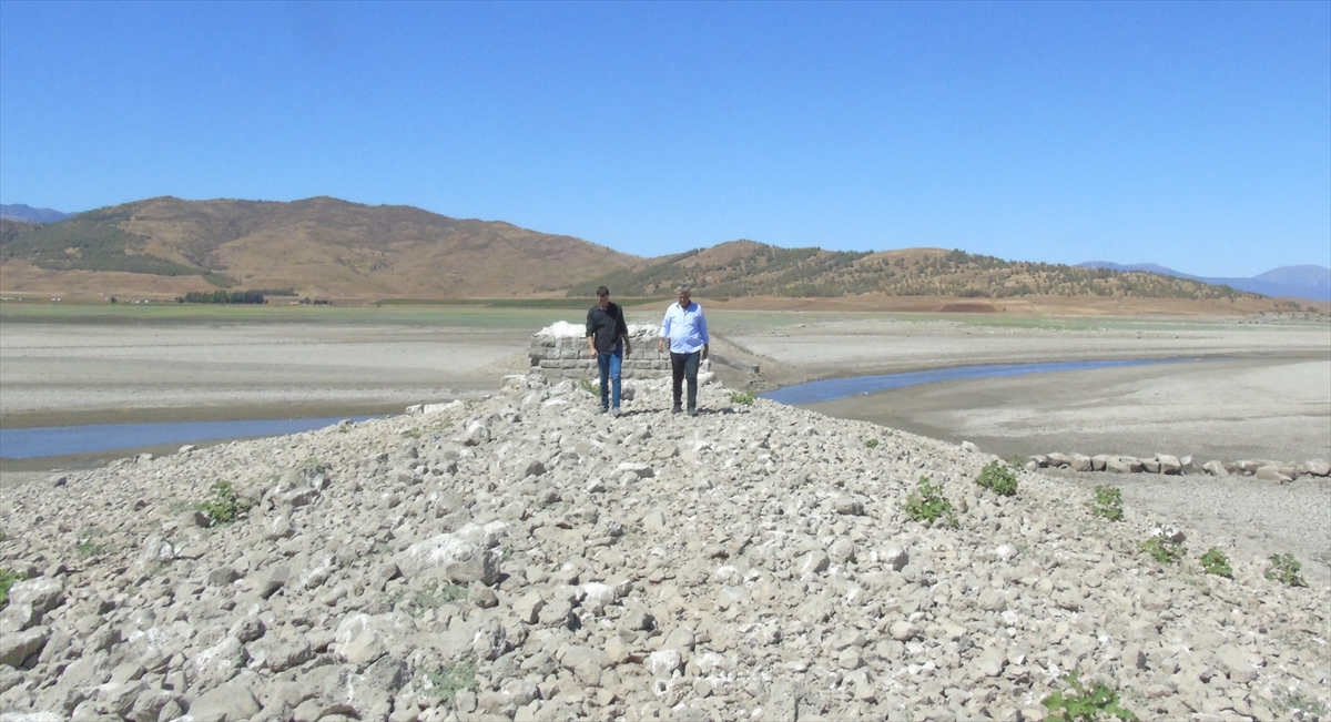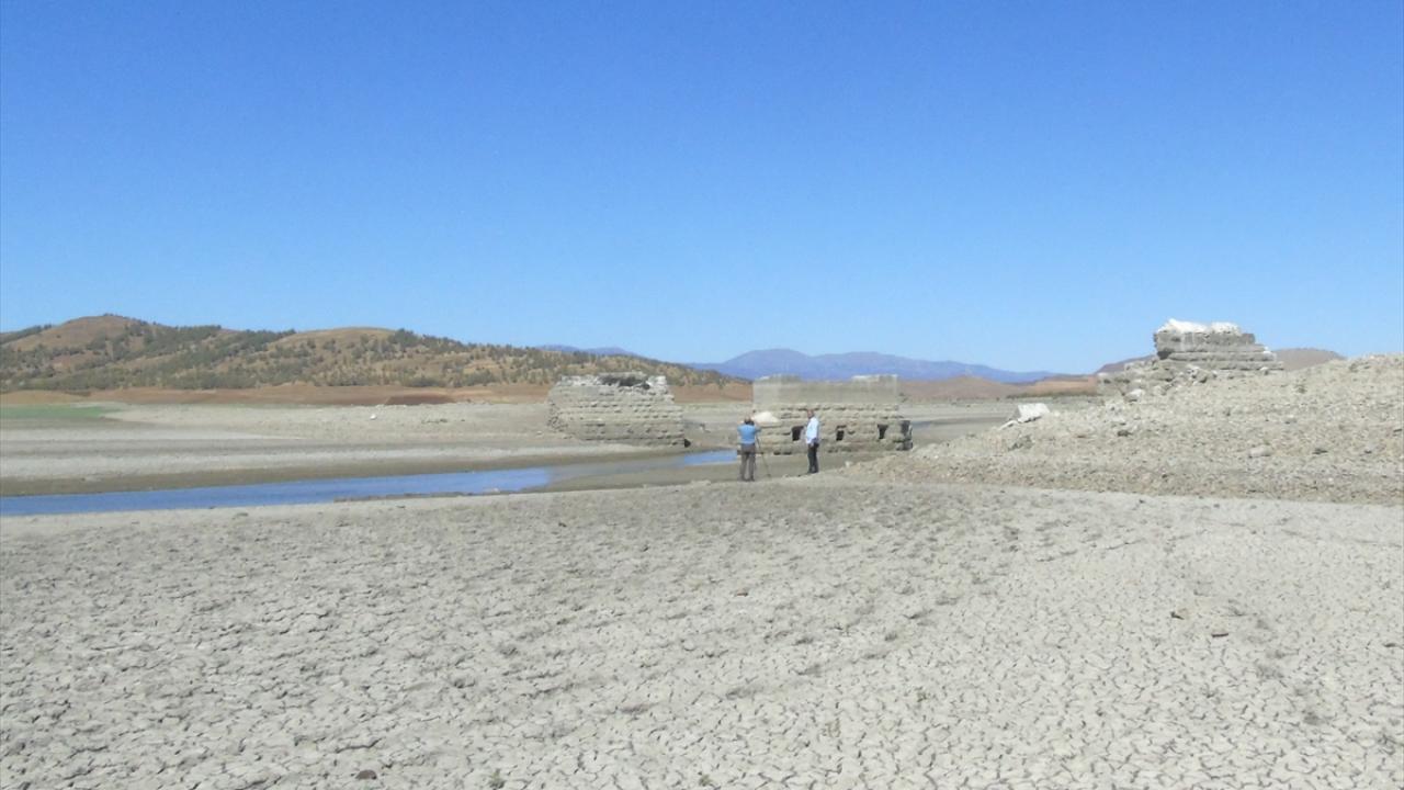 Kuraklık nedeniyle suların çekilmesinin ardından tarihi köprünün ayakları yeniden gün yüzüne çıktı.
