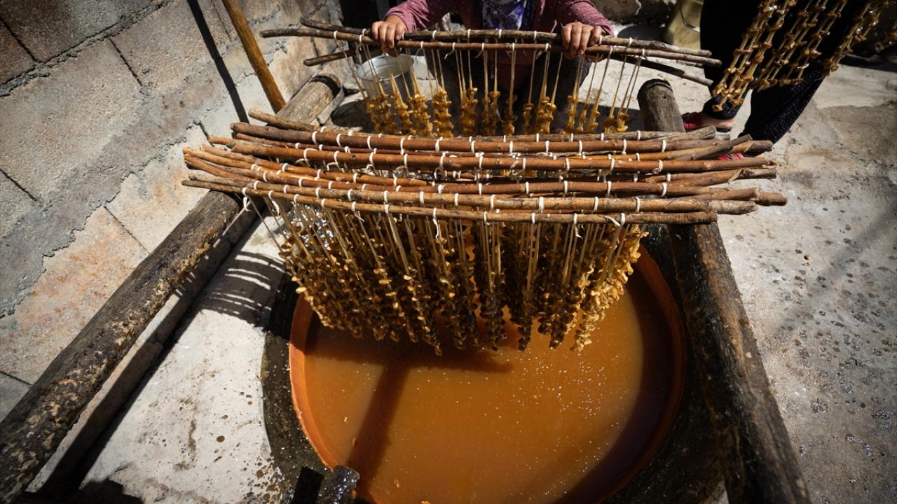 Çoğu ailenin geçim kaynağı olarak çeşitli aşamalardan geçen mum şeklindeki bu tatlı, ipe dizilmiş cevizin bir veya daha fazla kez kaynamakta olan şıraya batırılıp çekilmesinden sonra asılıp kurutulmaya bırakılıyor.