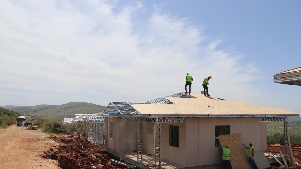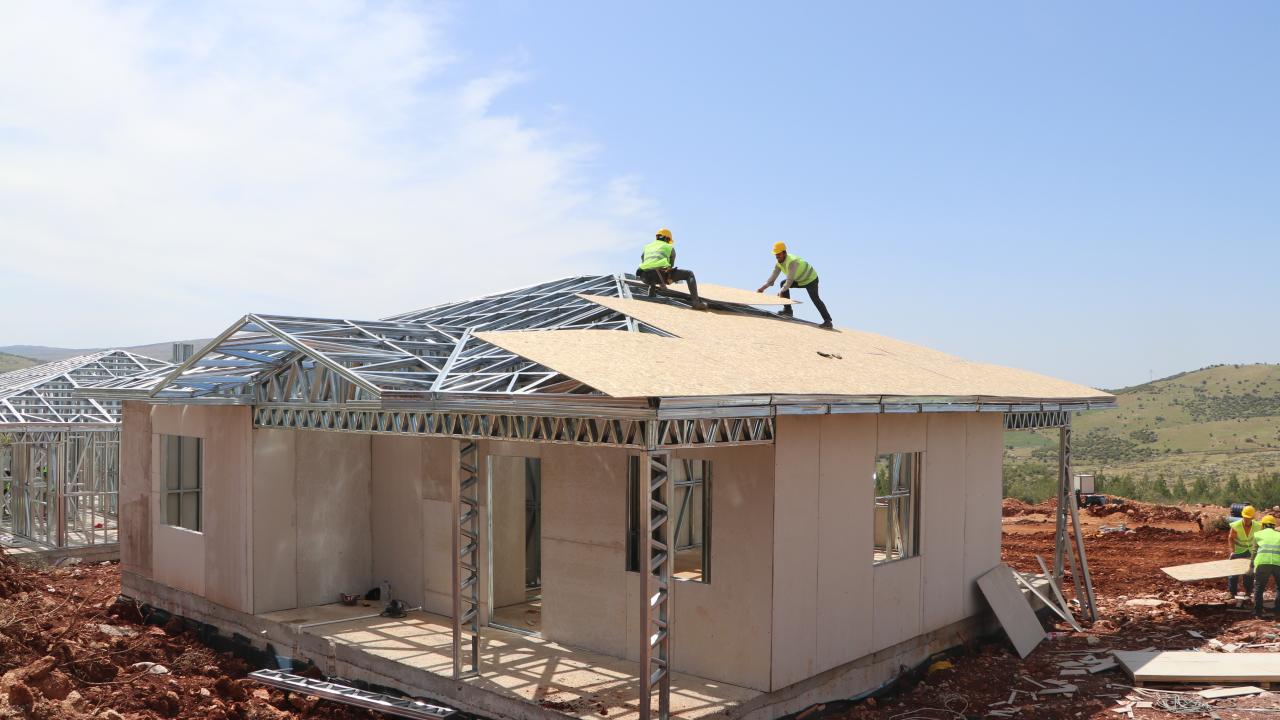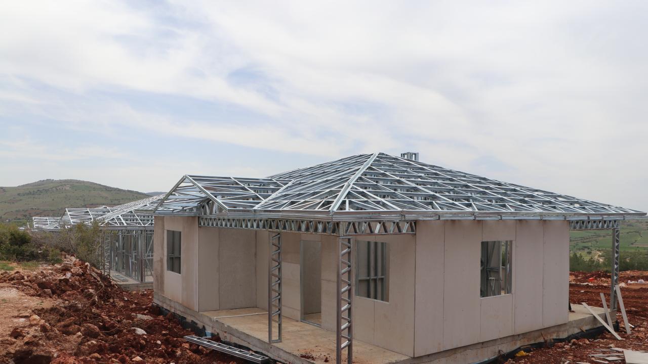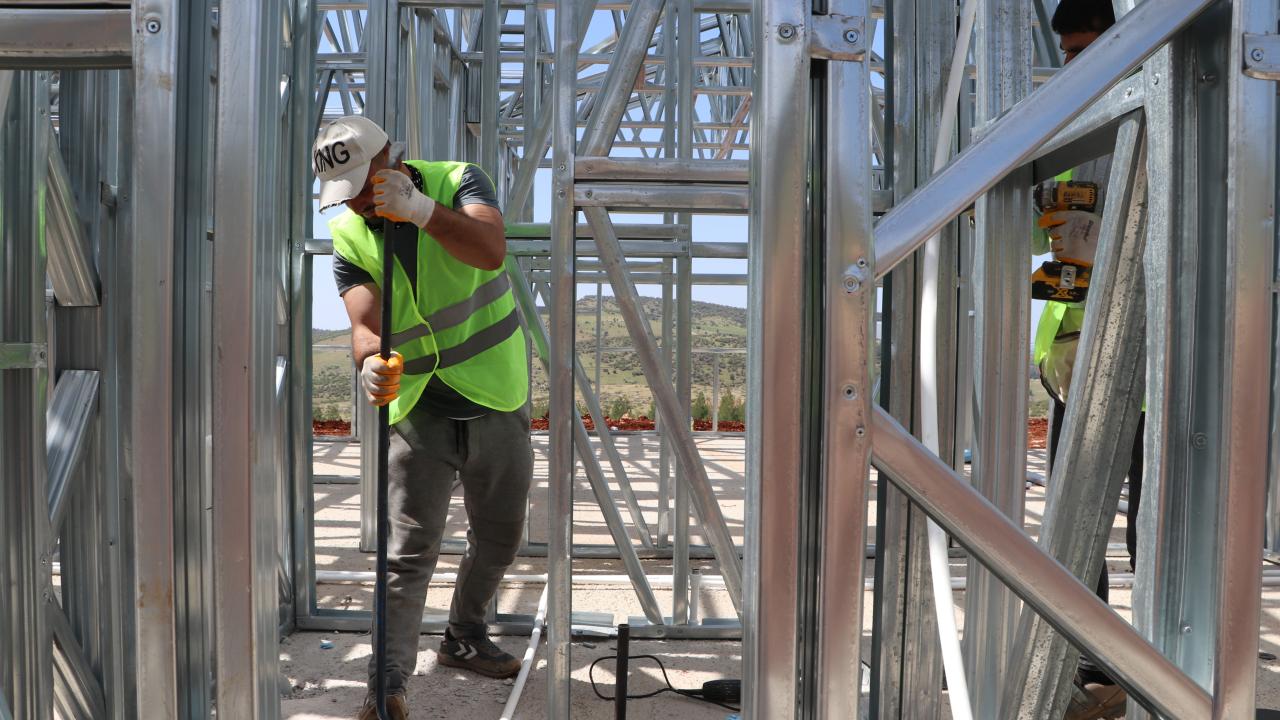 Gaziantep'te depremzedeler için çelik konstrüksiyonlu köy evleri inşa ediliyor