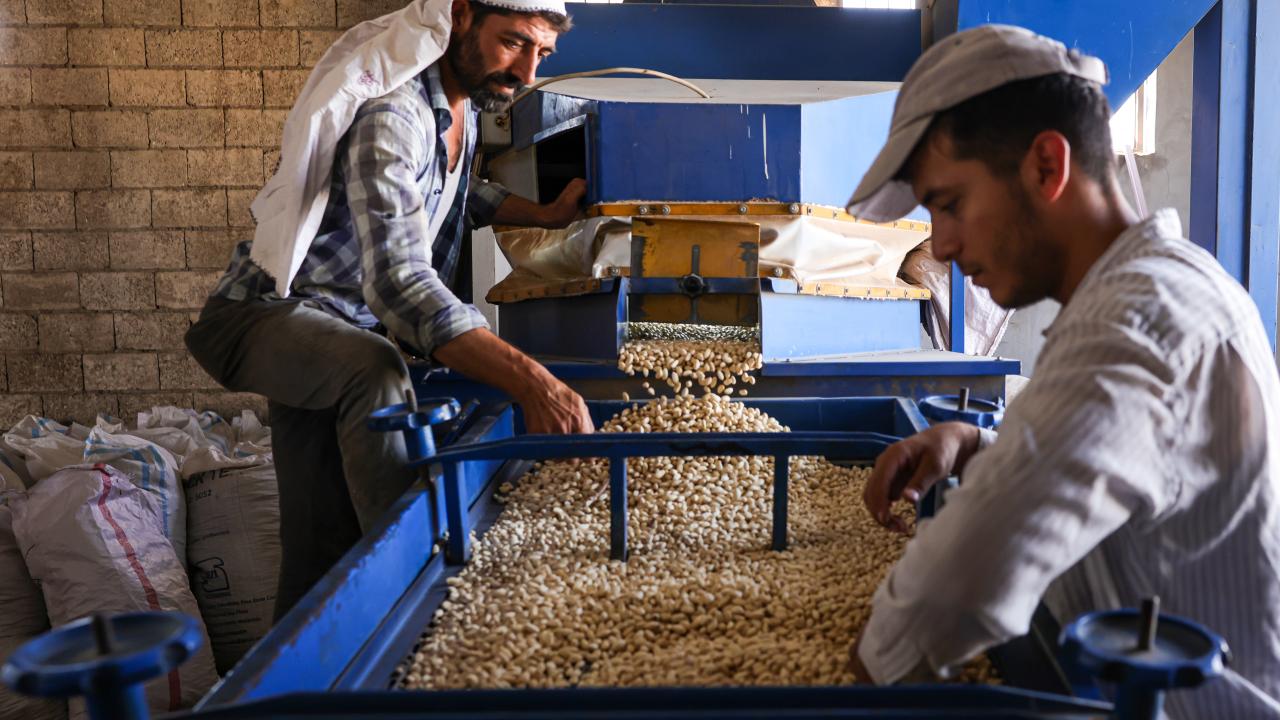 Gaziantep’te hasadı yapılan fıstıklar, kabuklarından ayrıldıktan sonra güneş altında veya özel depolarda kurutuluyor. Geniş serim alanlarında düzenli olarak karıştırılan fıstıklar, homojen şekilde kuruması için gün boyu özenle takip ediliyor.