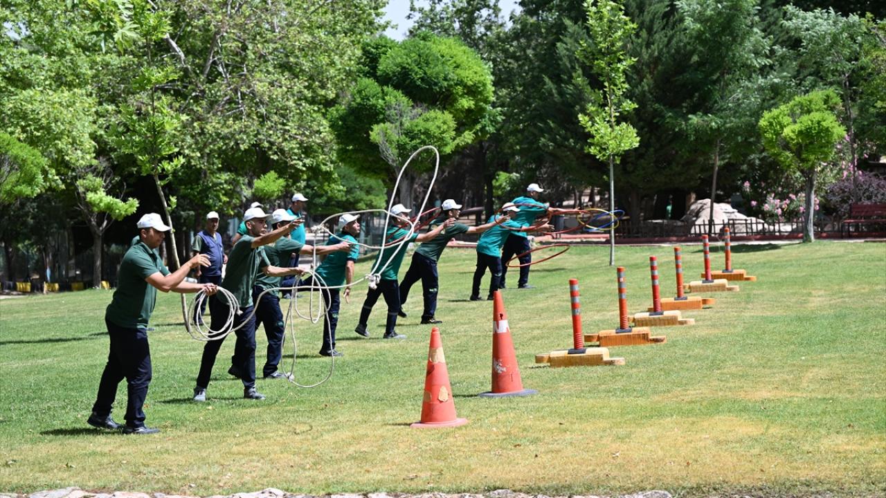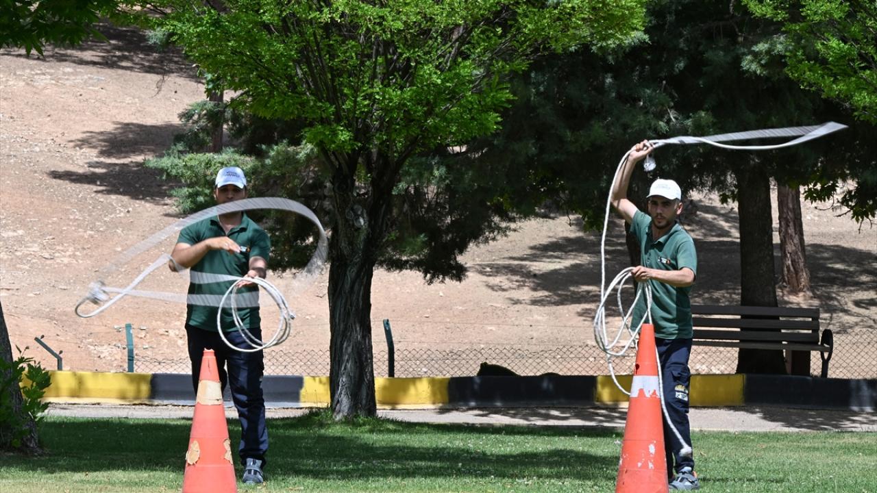 Aralarında veteriner hekimin de bulunduğu 20 kişilik tim, yaklaşık bir aydır kement ve uyuşturucu iğne atan tüfekle eğitim yapıyor.