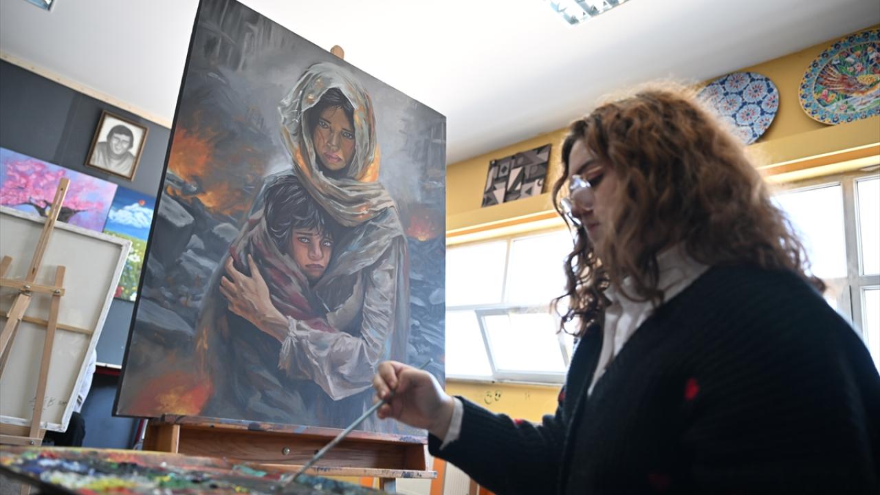 Öğrencilerden Emine Ezel Şahin ise resmi yaparken Gazze`deki acıyı hissettiğini belirterek, "Aynı şey bizim başımıza gelseydi neler yaşayacağımızı düşünmek çok üzdü. Hiçbir şey yapamamak daha da üzdü. Yaptığım resimle en azından ufak da olsa bilinç oluşturmak istiyorum. Hem geleceğimiz için hem de Gazze’deki kardeşlerimiz için." diye konuştu.